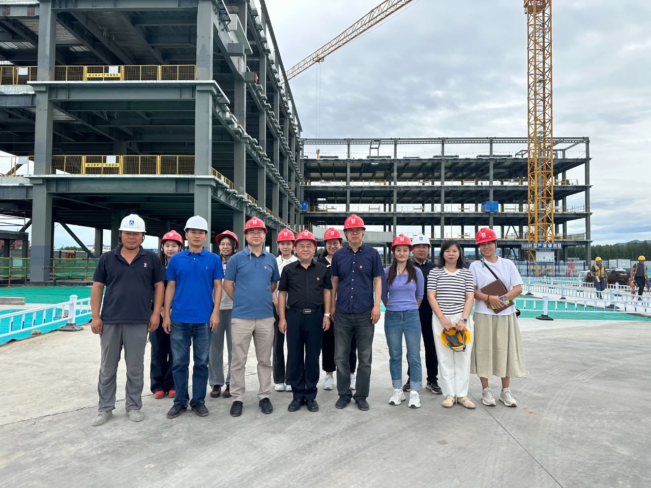 课前,第二工程分公司总经理李德志向刘羊子详细介绍了怀密项目的现场管理和亮点工作。刘羊子对现场标准化管理、扬尘污染防治、安全生产管控及品牌形象塑造等方面的工作给予高度评价,并强调要凝聚团队合力,全力打造中国建技标杆项目部。