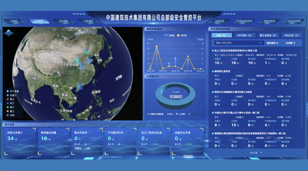 课题组研发了塔式起重机安全监控、施工升降机安全监控、高支模安全监控、人员行为识别、基坑变形可视化监测、基坑智能化监控等安全管理关键系统,实现了数据自动采集,实时上传到项目和企业总部,为提升企业总部项目安全生产管理能力提供了技术支撑。