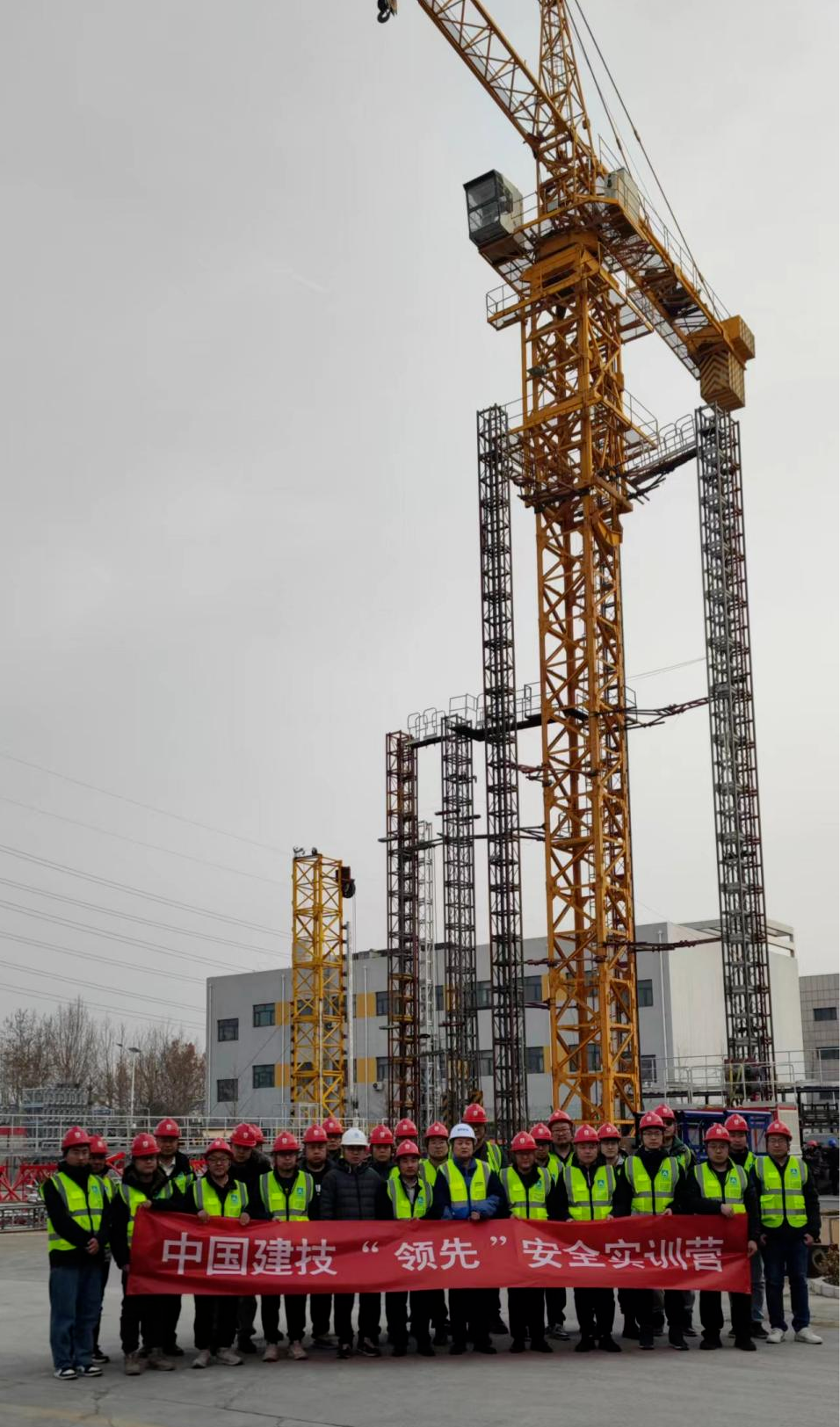 在专业人员指导下,实训营学员们有序攀爬塔吊,实物学习塔式起重机各零部件工作原理和安全防护重点。