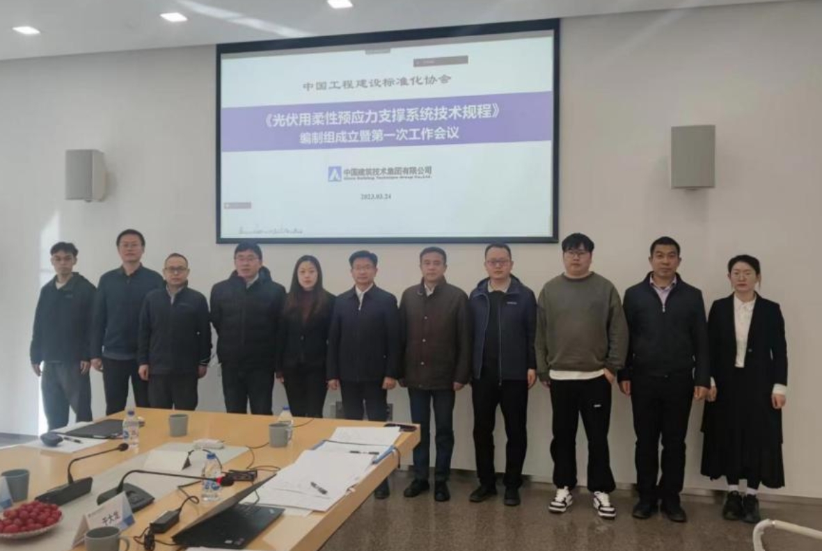 3月24日,由集团公司和中铁上海设计院集团有限公司共同主编的《光伏用柔性预应力支撑系统技术规程》(以下简称《规程》)编制组成立暨第一次工作会议在京召开。