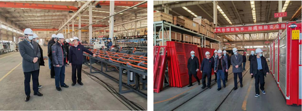 签约仪式前,北京建机院副总经理张声军陪同冯禄一行实地考察了北京建机院廊坊开发区生产基地和金光道院区,并详细介绍了北京建机院在施工升降机、工业电梯、钢筋加工设备、擦窗机等重点工程机械产品方面的生产制造和工程应用,以及在升降机租赁、施工安全、建筑机械设备和电梯检验检测领域的综合竞争优势。通过交流,双方进一步明确了合作方向,细化了合作的内容和形式。