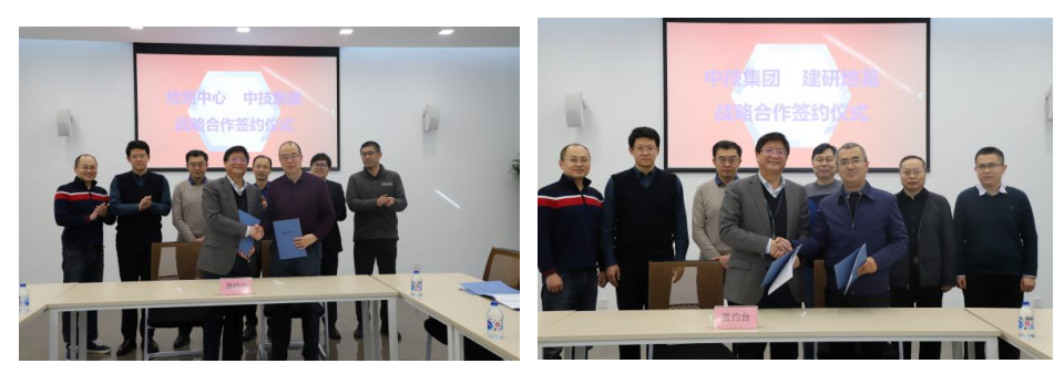 2月15日,中技集团与建研地基、检测中心举行战略合作签约仪式,中技集团董事长冯禄,建研地基董事长高文生,检测中心总经理王霓出席签约仪式并代表各方签署协议,各单位相关部门负责人及相关人员参加签约仪式。