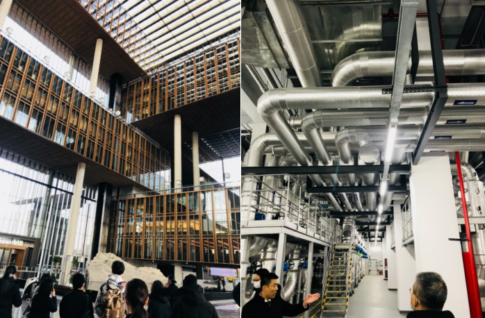 亚洲基础设施投资银行总部是国家“一带一路”倡议建设重点工程,也是首个由我国倡议成立的政府间多边开发机构。总部大楼以“鲁班锁”为设计理念,高空俯视的“中国结”寓意着“中国结·连接世界”,彰显着我国开放自信的姿态。设计师们在讲解员的带领下先后参观了公共区域、办公区域和设备机房等,全面了解了大楼的建筑特色,80米高的挑空大厅和7个采光中庭的设置使所有工作区享受开阔视野与均衡采光,10处空中花园的置入营造出了兼具艺术性和实用性的绿色多元复合空间,总部大楼与众不同的设计巧思和精妙绝伦的建筑技术令在场的设计师们深感震撼。