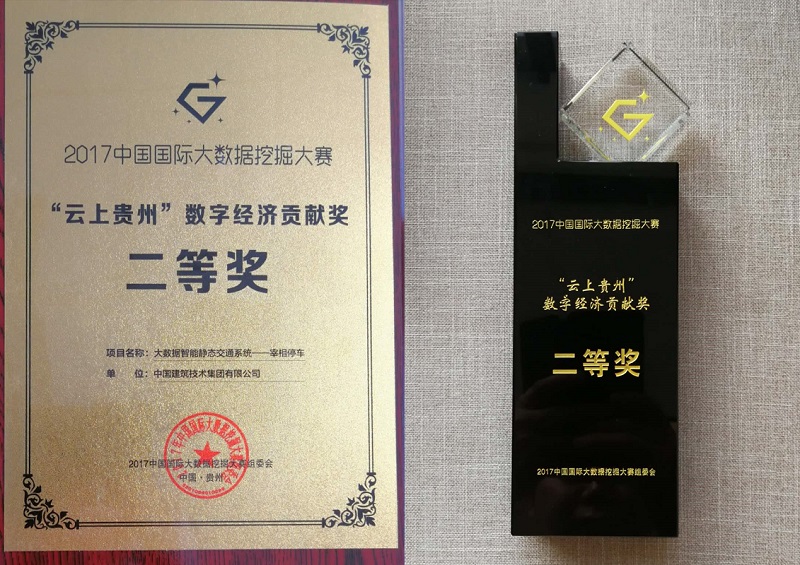 2017年12月28日,2017中国国际大数据挖掘大赛在贵州省贵阳市落幕,我公司基于大数据云平台的智能停车项目--宰相停车项目,获得“云上贵州-数字经济贡献奖”二等奖。
