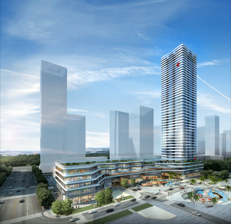 本项目为商业综合体,规划总用地面积27171.93㎡,规划净用地面积20181.05㎡,总建筑面积158472.85㎡,地上总建筑面积103451.20㎡,地下总建筑面积55021.65㎡,容积率为4.96,绿化率为35%。其中地上部分为一栋48层塔楼和附属5层裙楼,塔楼总建筑高度198.9m,裙楼总建筑高度25m,地下室为4层,底板建筑标高为-16.3m。