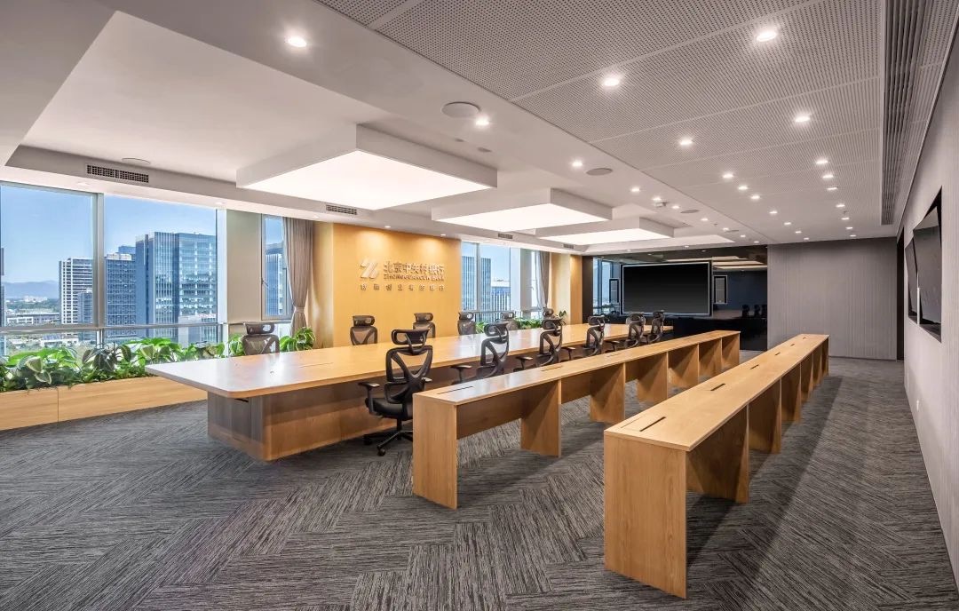 基于企业的金融属性以及创新服务的特点,室内装修设计总体设计风格为现代简约风格,结合企业的价值观在造型、色彩和选材上都做了年轻化考虑,并考虑企业的可持续发展在设计上选择模块化标准化设计便于后期灵活改动,在重点楼层进行个性化设计提升辨识度。