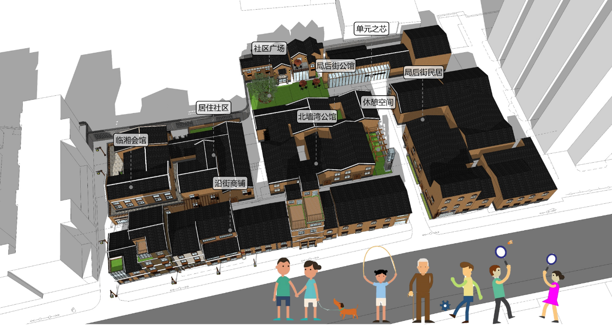 2)社区营造:完善城市生活所需的配套功能、创造尺度适宜的公共开敞空间、激发独特社区文化和场所精神。