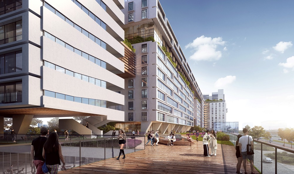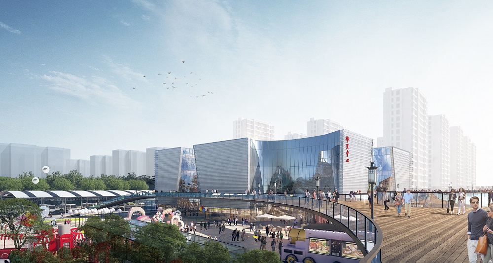 活力天街场景——构思利用300余米长的架空平台加上400余米长起伏的景观步道,形成总长800米、贯穿整个基地的带状连续步行空间(天街),避开喧嚣,开放视野,一路通达,体验活力。