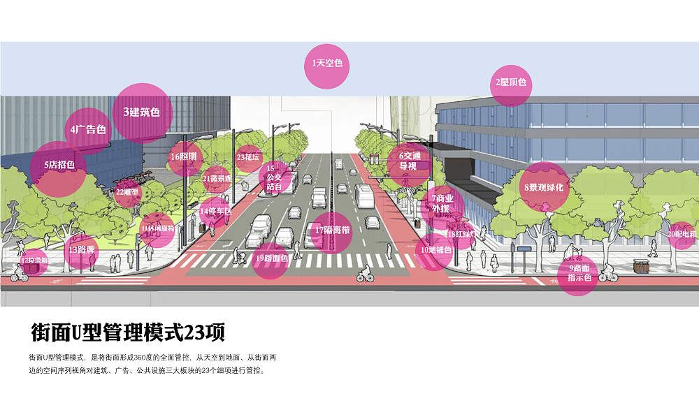 新都区城市容貌提升,是在公园城市建设背景下,追溯城市文脉、梳理城市色彩基底、寻找城市主调,以城市色彩为核心,开展的系统性城市形象识别系统提升。创新执行的城市色彩、户外外摆、户外广告、户外导视系统,将城市以点、线、面的方式,全系统覆盖,通过综合性的治理体系及样板段示范,建立可实施可落地的管控引导。