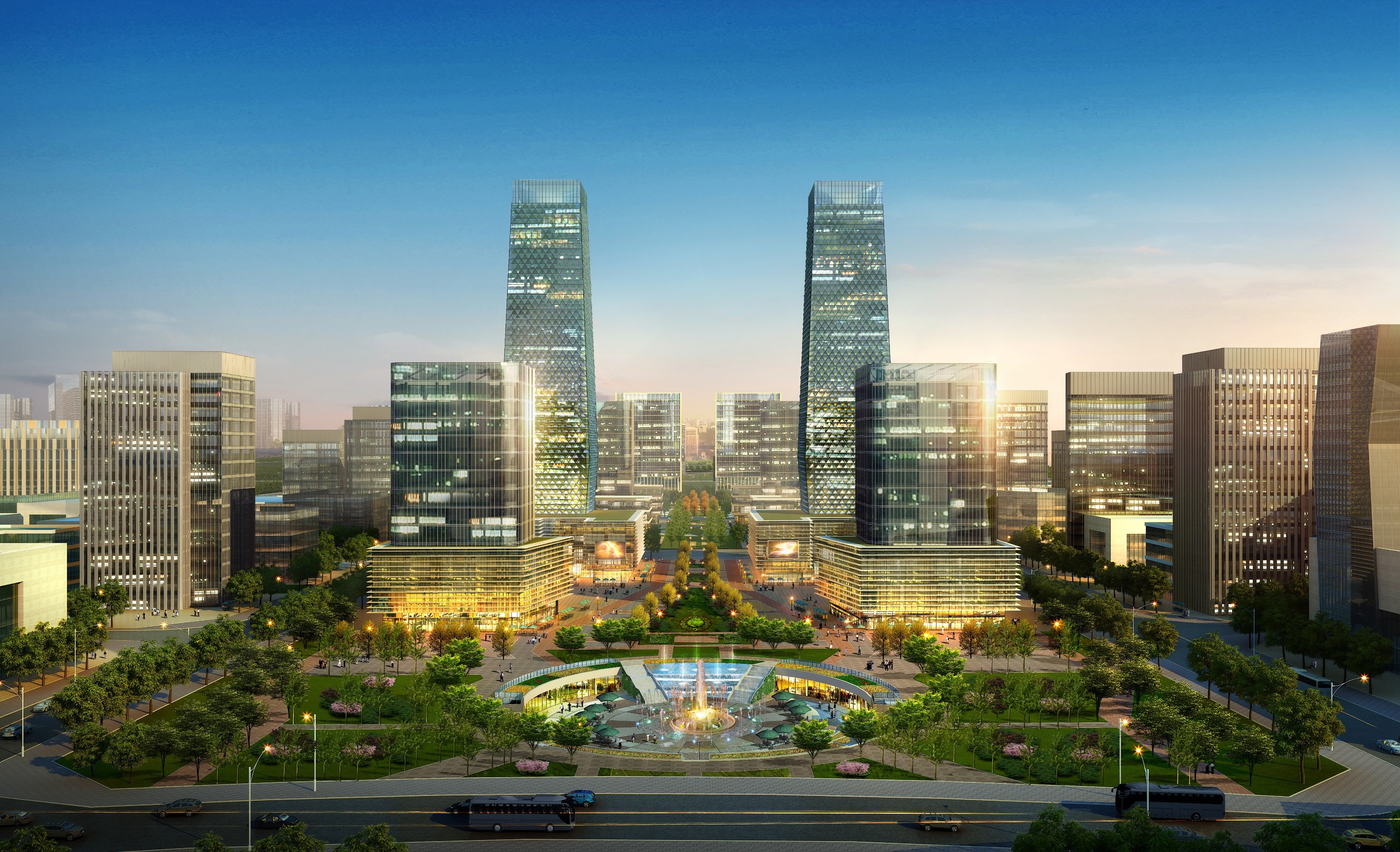 对外通过高速、高铁、机场与周边区域城市紧密联系,以总部服务、现代物流、现代商贸为导向的智慧宜居新城,实现功能效益最大化立足基地现状条件。
