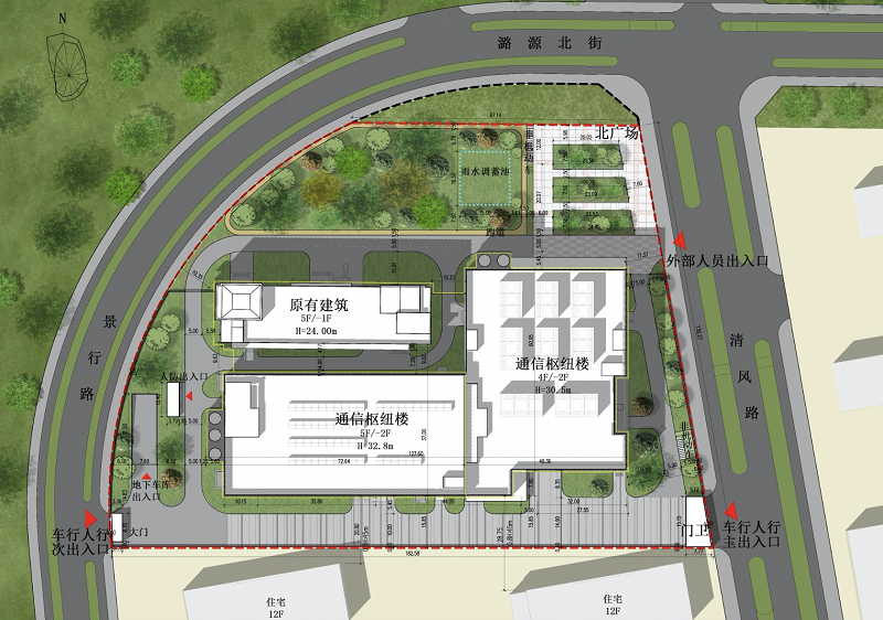 项目在保留原有通信楼基础上,在南侧及东侧新建一座L型通信枢纽楼。项目建成后,可以满足国际出口设备和互联网安全设备扩容需求,同时打造国际一流的物联网、大数据分析、云计算及各类智慧应用基地,并为中国电信与中国移动提供机房,充分满足城市副中心办公区及整个城市副中心区域未来多样化的智慧通信需求以及网络安全需求,为城市副中心提供更优质、更便捷、更安全的全方位通信服务。