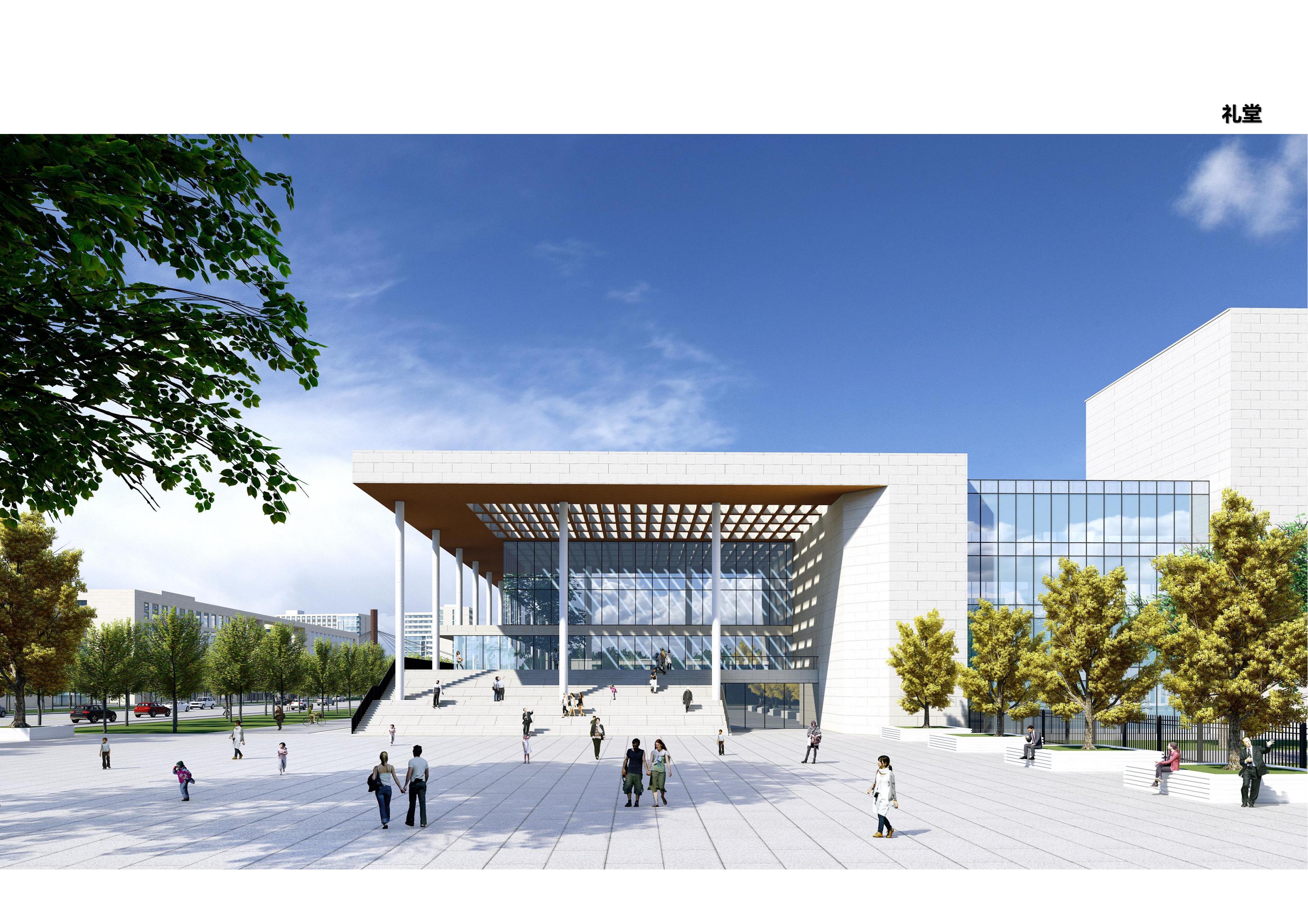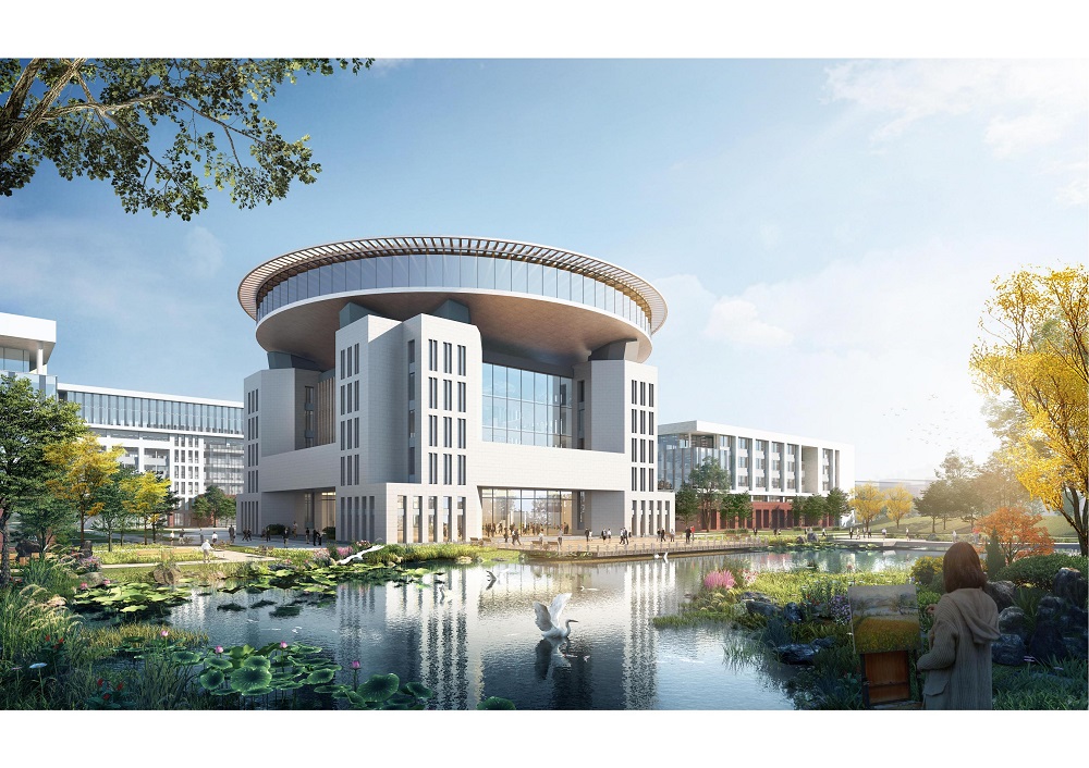 项目核心文化建筑:图书馆与图书综合楼,采用左右对仗形式设置于东西校区中心位置。图书综合楼以“圆”为顶;图书馆以“方”为体,体现“天圆地方” 的中国传统宇宙观 。