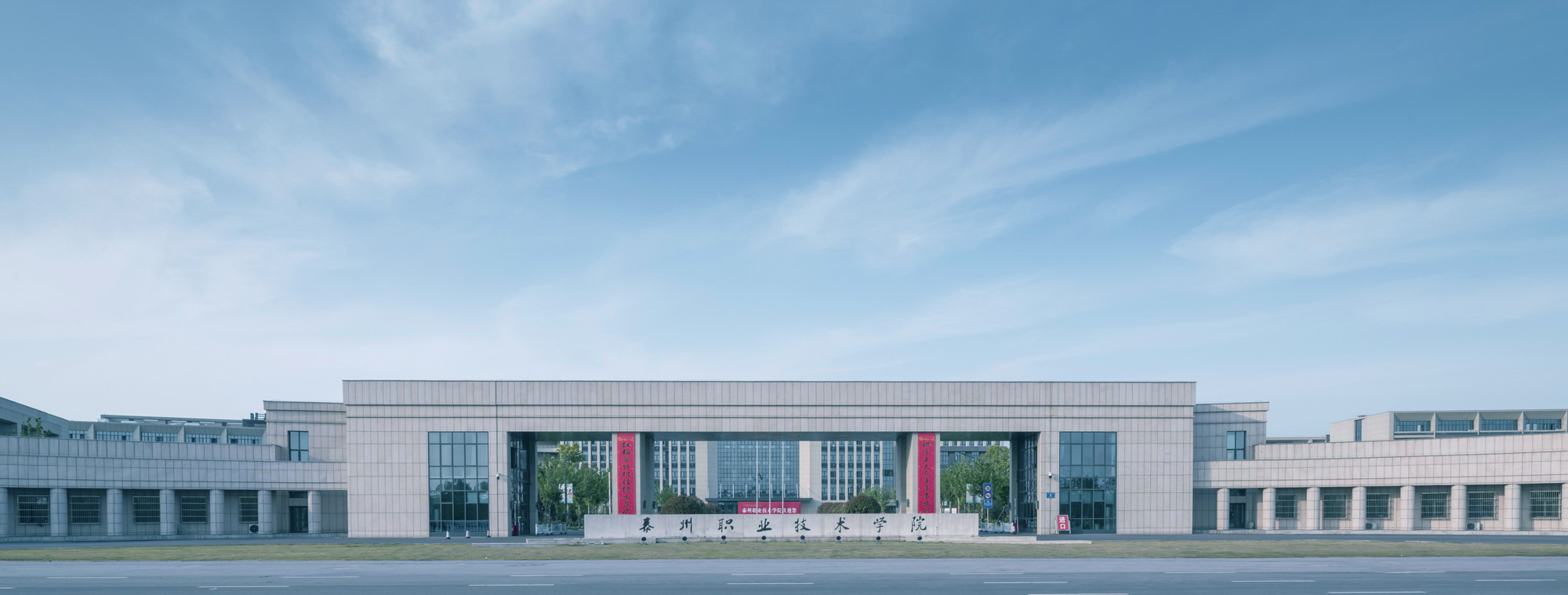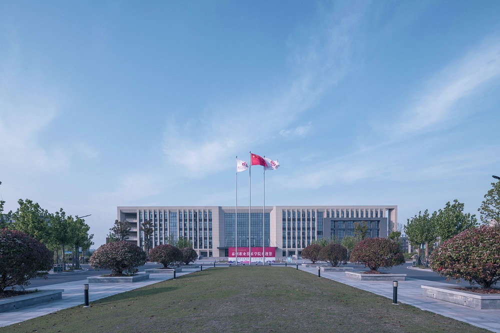 本项目为泰州职业技术学院中国医药城新校区规划与建筑方案。选址于泰州中国医药城境内。规划用地面积约1061 亩。设计规划在校学生10000人,教职员工670 余人。实际用地面积约54万平方米,一期设计总建筑面积约27.98万平方米。实际本单位完成施工图涵盖建筑面积约16.54万平方米。