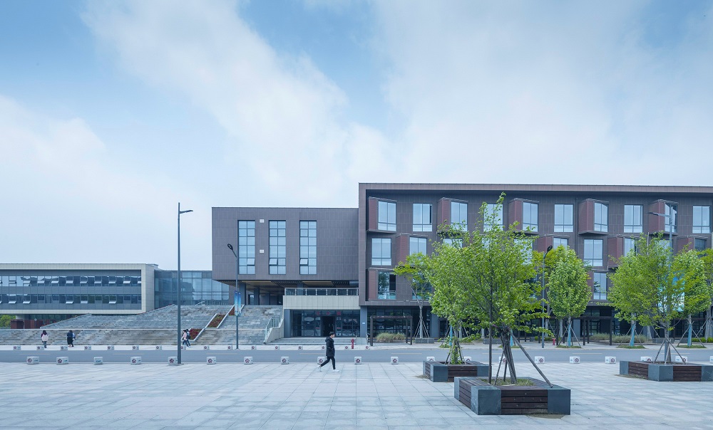 绿色建筑设计理念贯穿整体设计。建筑景观一体化设计:各教学楼设置屋顶绿化,与水体景观相互呼应,形成赏心悦目的景观阶梯,塑造满足现代教学要求的整体式景观建筑群落。被动式设计:建筑采用适应当地气候条件的平面形式及总体布局,利用导风墙、廊架、架空、绿色材料设计,使建筑各组成部分尽可能以自然的方式运行,降低建筑能耗。