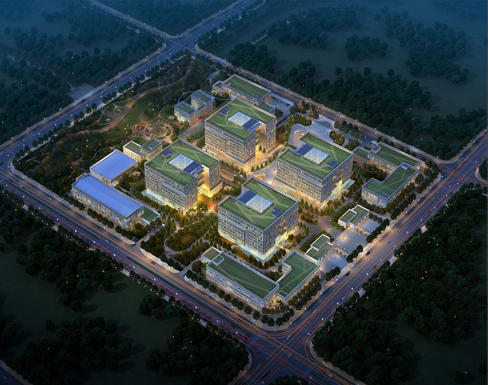 功能分区:本项目设计将4栋39.4米高的主要研发办公大楼放在场地正中,其它相关的办公、实验、服务配套等建筑围绕在其中周。