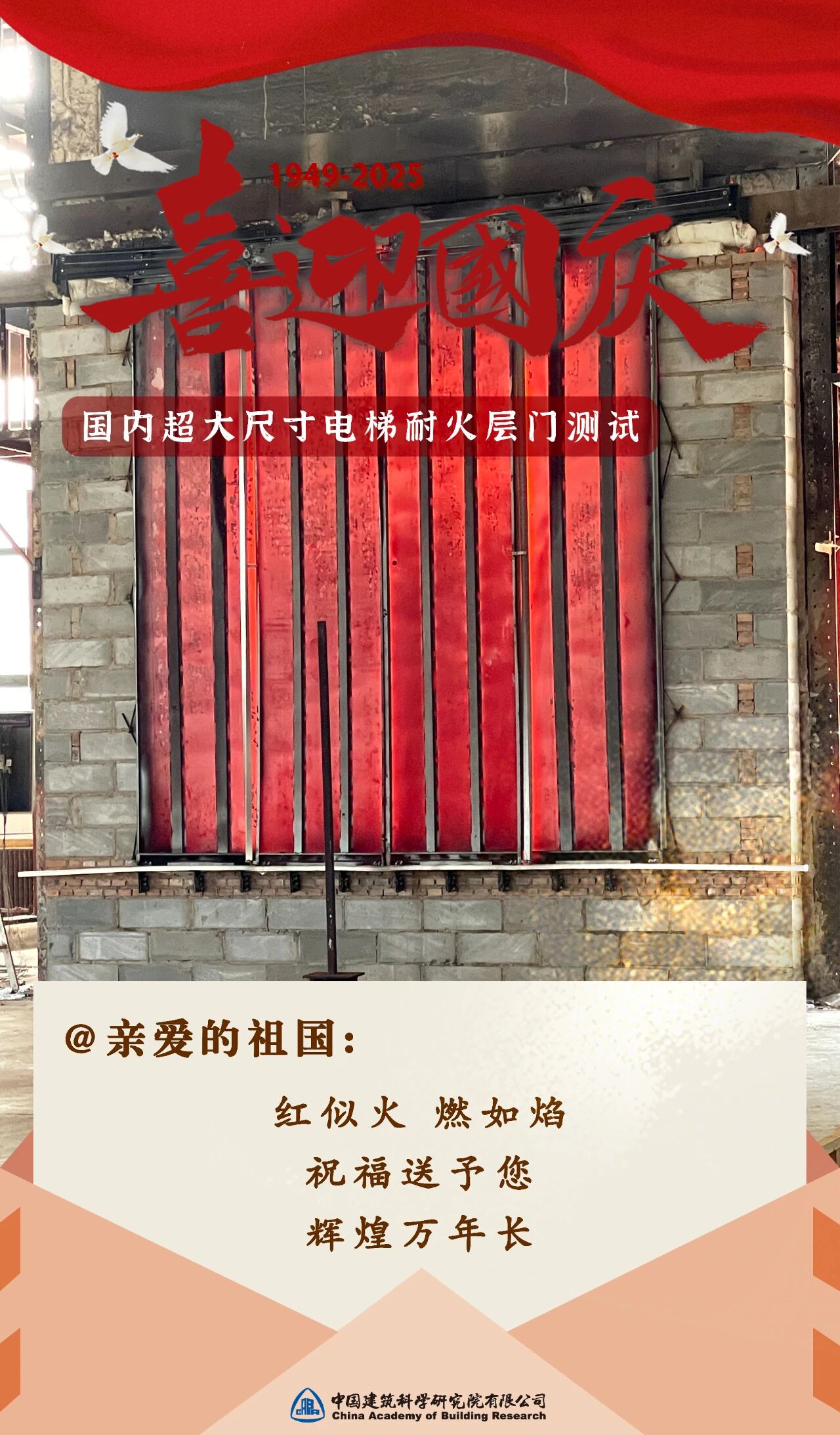 北京建机院经2小时、1000多度超高温严酷考验,测试超大尺寸电梯耐火层门在极限环境下的耐火性能。