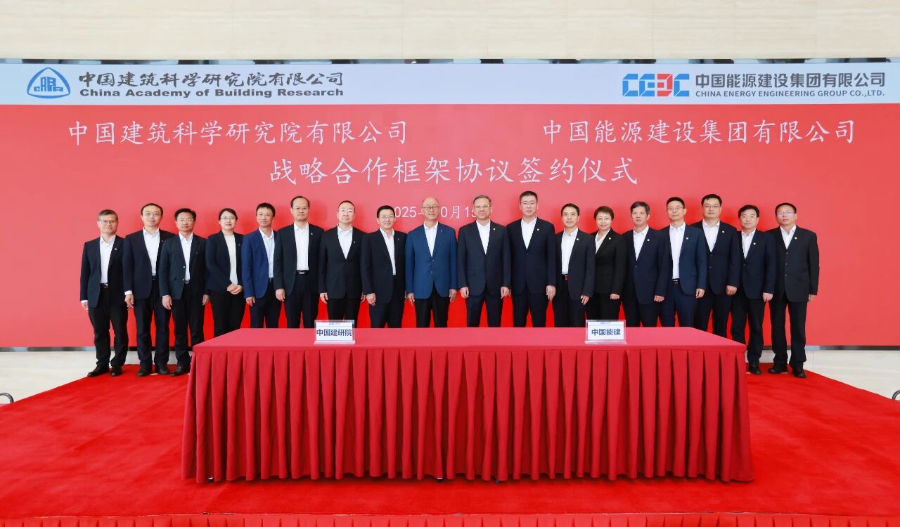 10月15日,中国建研院与中国能源建设集团有限公司(以下简称“中国能建”)签署战略合作协议。中国建研院党委书记、董事长许杰峰,党委副书记、总经理樊金龙,副总经理毛军为和中国能建党委副书记、总经理倪真出席签约仪式并就深入合作进行座谈交流。中国建研院副总经理孙建超,中国能建党委常委、副总经理李新生代表双方签署协议。