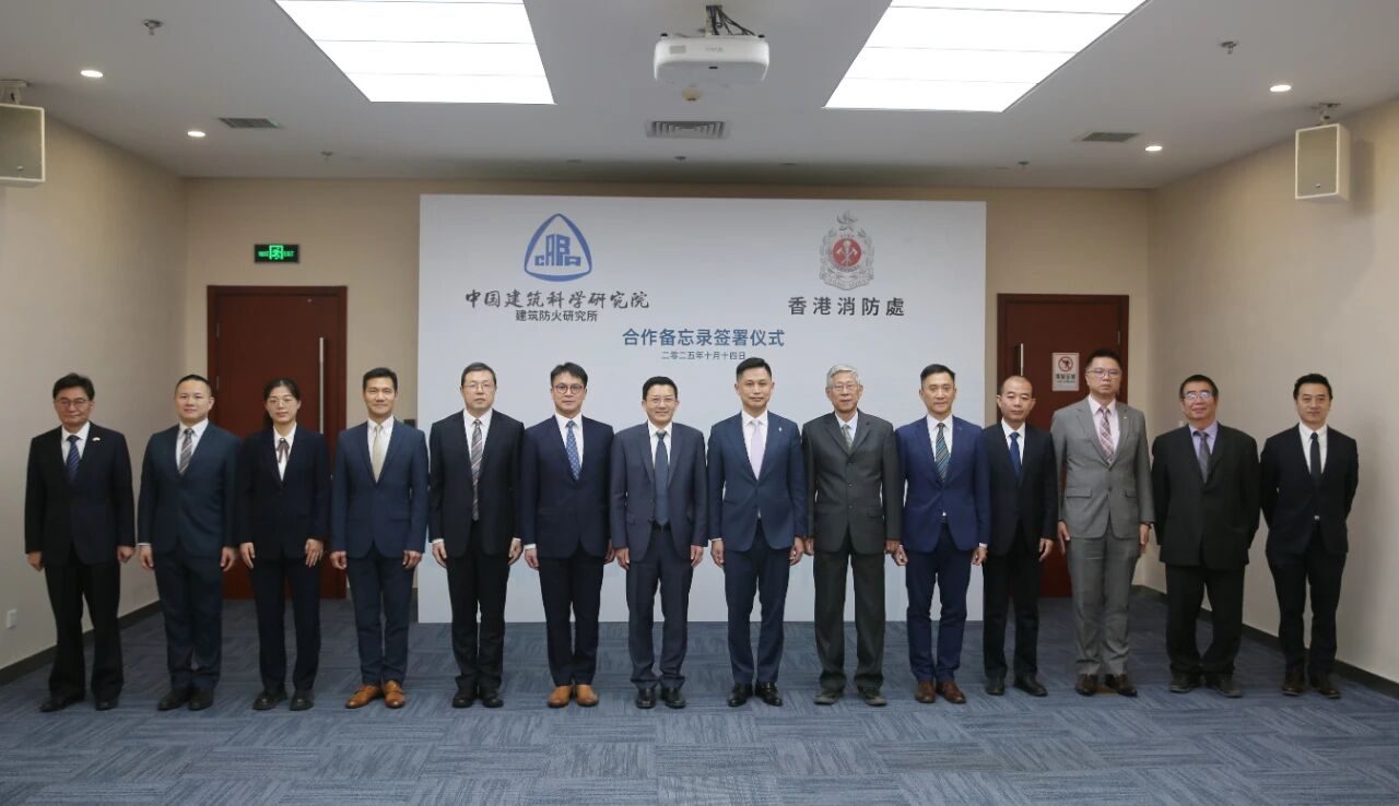 10月14日,中国建研院建筑防火研究所与香港特别行政区政府消防处(以下简称“香港消防处”)在北京举行合作备忘录签署仪式。中国建研院党委副书记、总经理樊金龙和香港消防处处长杨恩健共同见证签约,标志着双方在建筑防火安全领域的协作正式开启新篇章,将携手为两地乃至全球消防安全事业注入新动能。