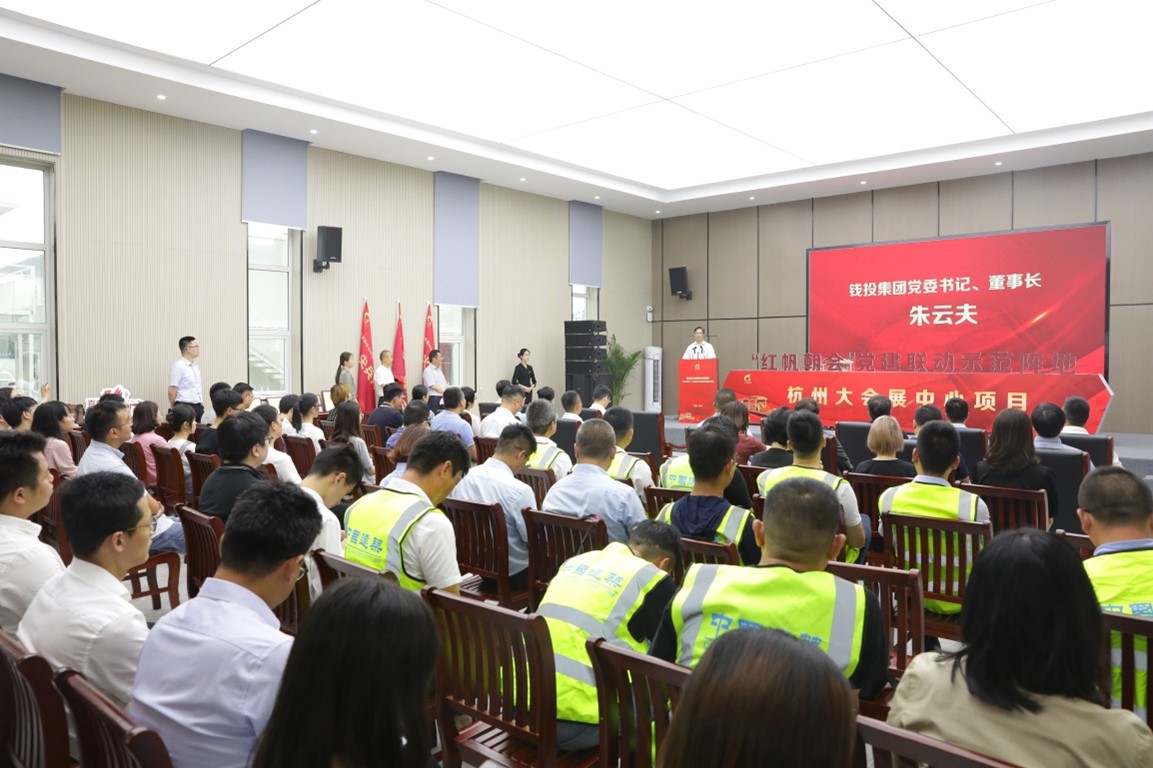 项目联合临时党委由杭州市会展新城开发建设有限公司发起,由公司及各参建单位招商蛇口杭州公司、中建四局、中铁大桥局集团、法国VP建筑师事务所等参与本项目建设的党员共同组成。党委书记由杭州市会展新城开发建设有限公司董事长蔡宏伟担任,公司项目经理黄雷任党委委员。