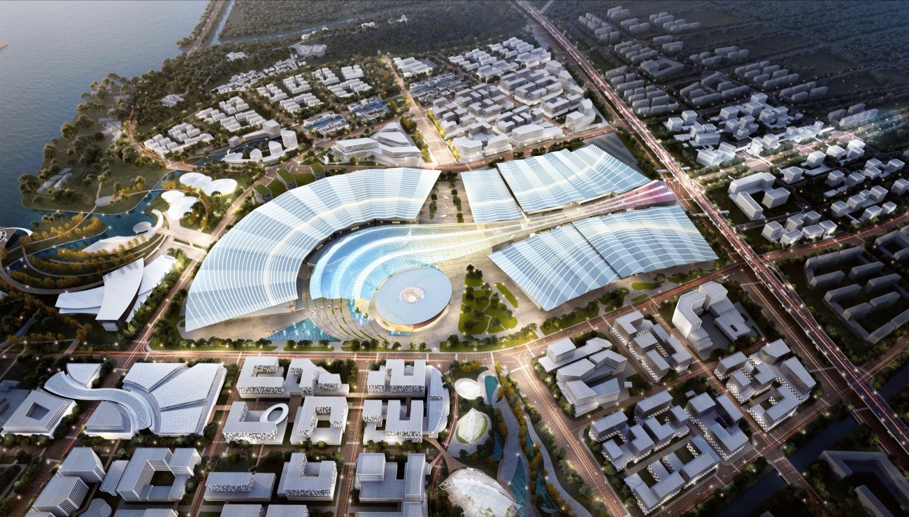 杭州大会展中心项目由招商蛇口作为总包代建,建筑设计院设计四院与法国VP建筑设计事务所联合设计。项目选址位于杭州会展新城核心区,总用地面积约1110亩,总建筑面积约124万方,地上约84万方,室内净展面积约30万方。坚持“展城融合、平展结合”原则,采用“钱塘风华、山水雅韵”设计理念,将抢抓长三角一体化发展重大机遇,对标国内外一流大型会展场馆,按照“智慧、绿色、高效”新一代大型会展综合体的建设要求,将项目打造成独特韵味、别样精彩的杭州橱窗,全国重要的临空会展基地和对外开放平台,钱塘江畔新的城市地标性建筑群。目前,该项目的一期工程已经入地下工程施工建设阶段。