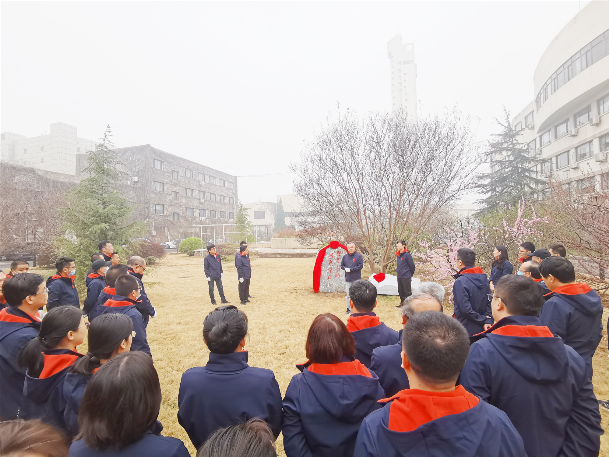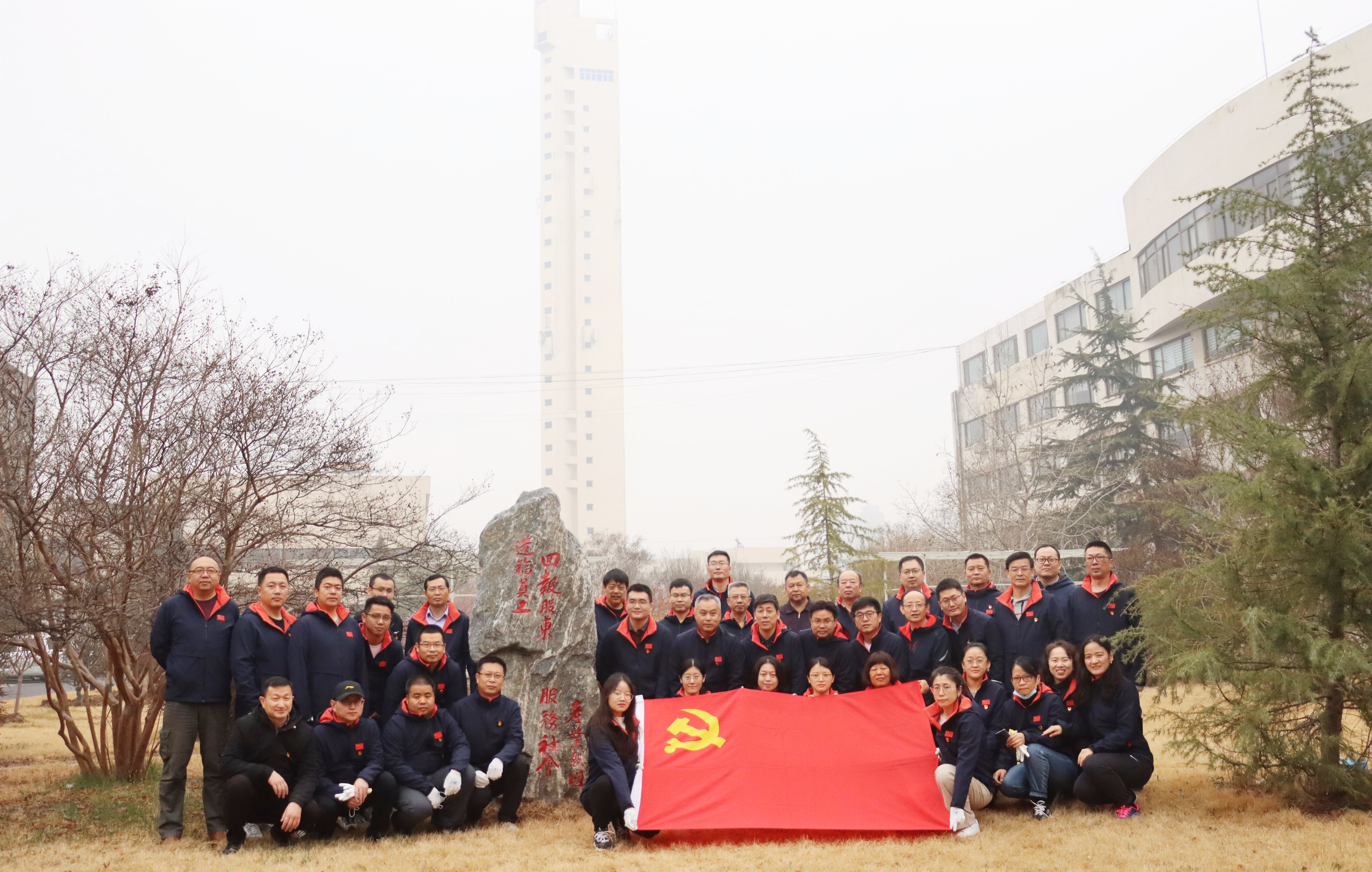 3月27日上午,北京建机院“企业文化公园”落成仪式暨“植树添绿我先行·党旗增辉更闪耀”党建活动在廊坊院区举行。北京建机院党委领导班子成员、部门负责人、支部书记、支委等40余人参加活动。