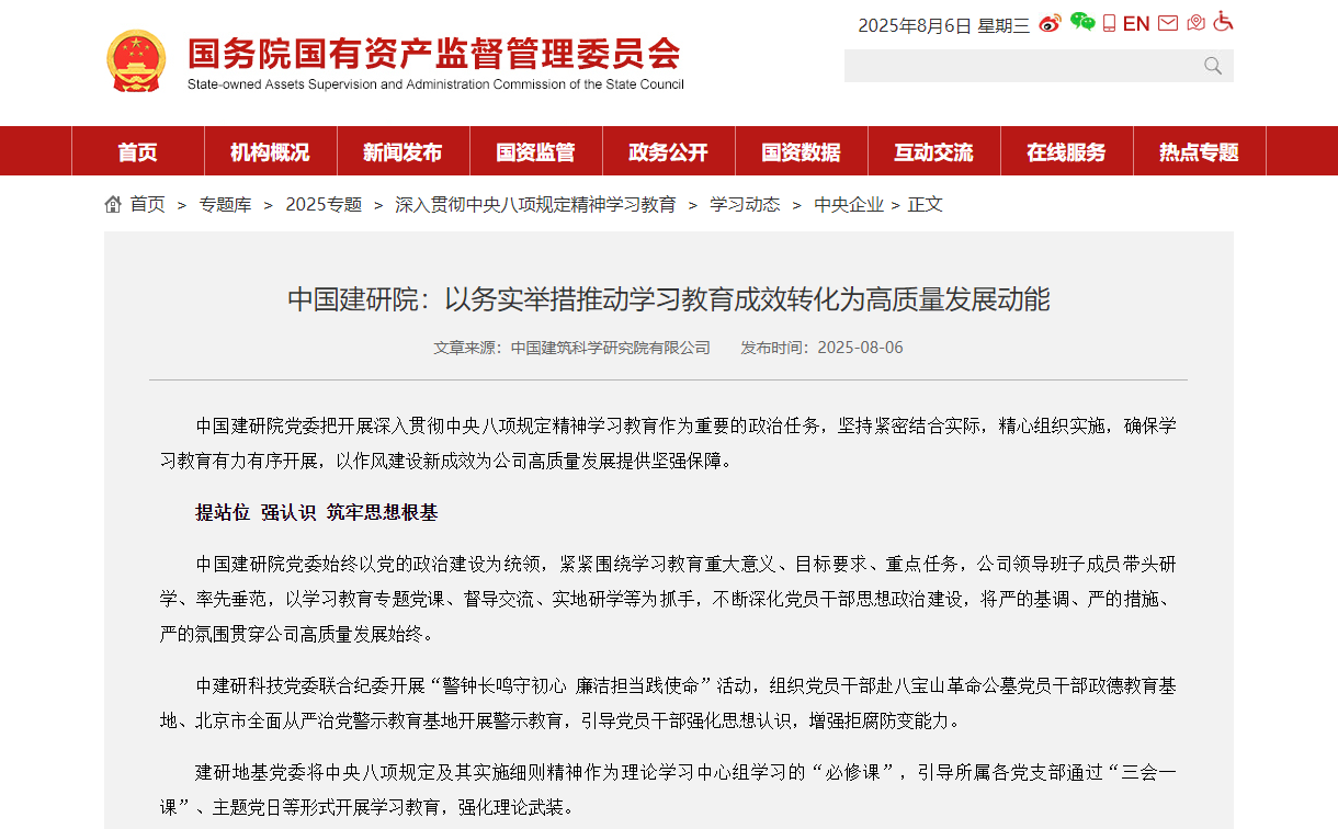 国务院国资委官网报道 | 中国建研院以务实举措推动学习教育成效转化为高质量发展动能