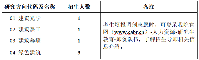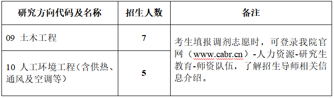 附件:中国建筑科学研究2026年硕士研究生招生考试调剂意向信息表