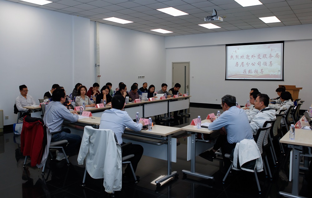 袁扬对汤浩一行的到来表示热烈欢迎,介绍了检测中心的业务范围、专业能力等。他表示,外交服务局房屋分公司在房屋管理、造价审核以及租赁使馆建设等方面具有行业优势,希望双方能够继续深化沟通交流,在建筑检测、鉴定、评估等方面进一步加强合作,实现合作共赢。
