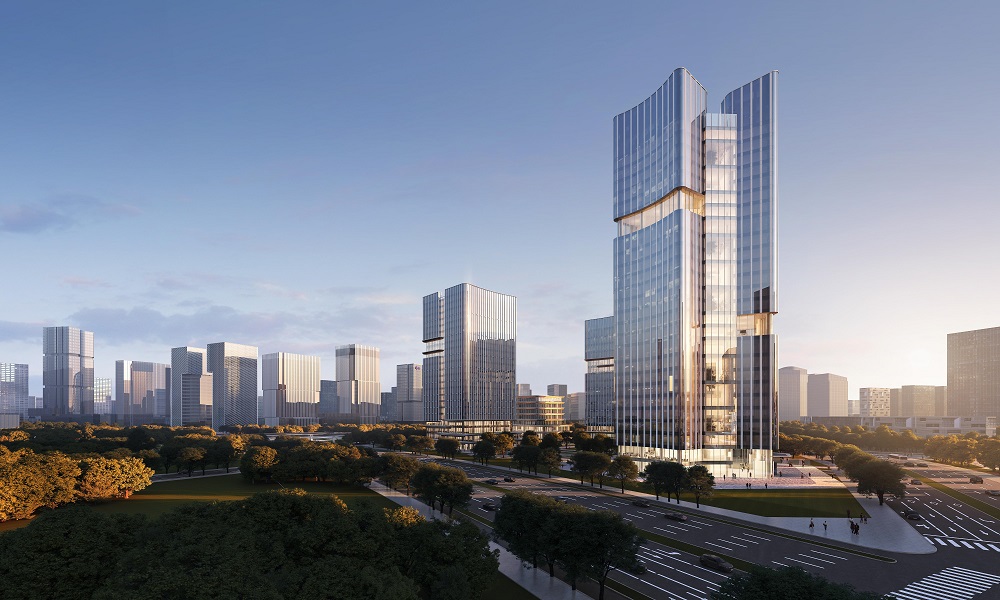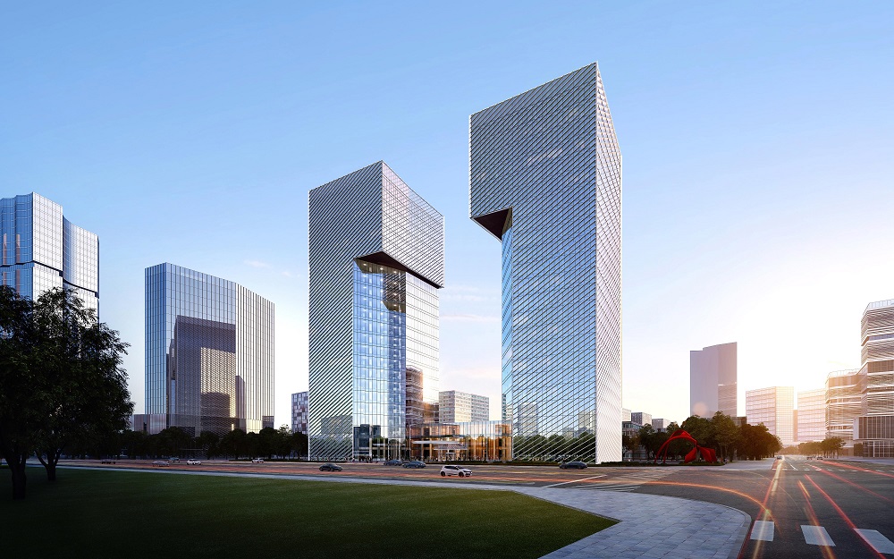 9号地块项目紧邻石家庄站东广场,是步入石家庄的一道标志性景观,彰显了城市的重要门户形象。以“城市之门”为设计理念,通过简洁的形体削切,打造高品质的金融双塔,展现具有未来视野的新时代金融办公企业总部形象。