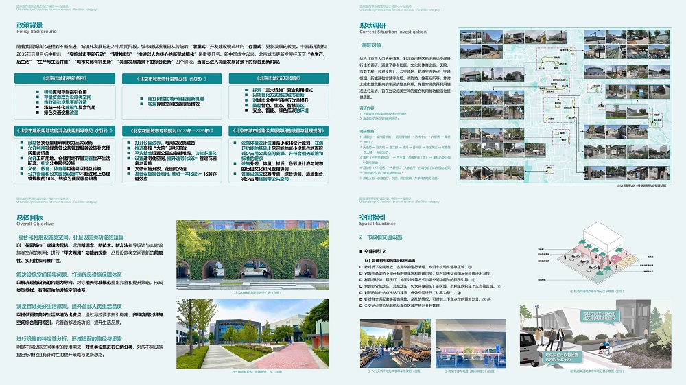 《导则》通过对北京市设施类空间问题梳理和案例研究,提出了对现有设施类空间优化配置的更新改造,通过完善各类设施功能进而更好地满足人民对美好生活的需要。同时,针对城市更新中城市土地资源有限和存量空间闲置的问题,《导则》还着力推进设施类空间复合利用的系统化和模式化,强调了设施类项目的政策实施和运营管理的方式。本课题顺应城镇化发展新阶段需求,寻求城市高质量发展的新道路;创新探索以品质提升效益的城市更新模式,使存量空间高效复合利用;从居民生活中实际问题出发,解决设施类空间在使用中存在的问题;形成一套设施类城市更新实施范式,推动设施类空间合理规范化利用。
