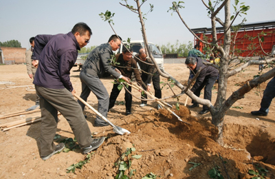 5月7日上午,院领导班子成员王俊、李朝旭、马建萍、汤宏、林海燕、许杰峰来到我院通州科研实验基地参加了植树活动。院领导们个个精神饱满,手持铁锨,挥锹培土,大家齐心合力栽下一株株果树,为营造基地优美环境增添了一片新绿。