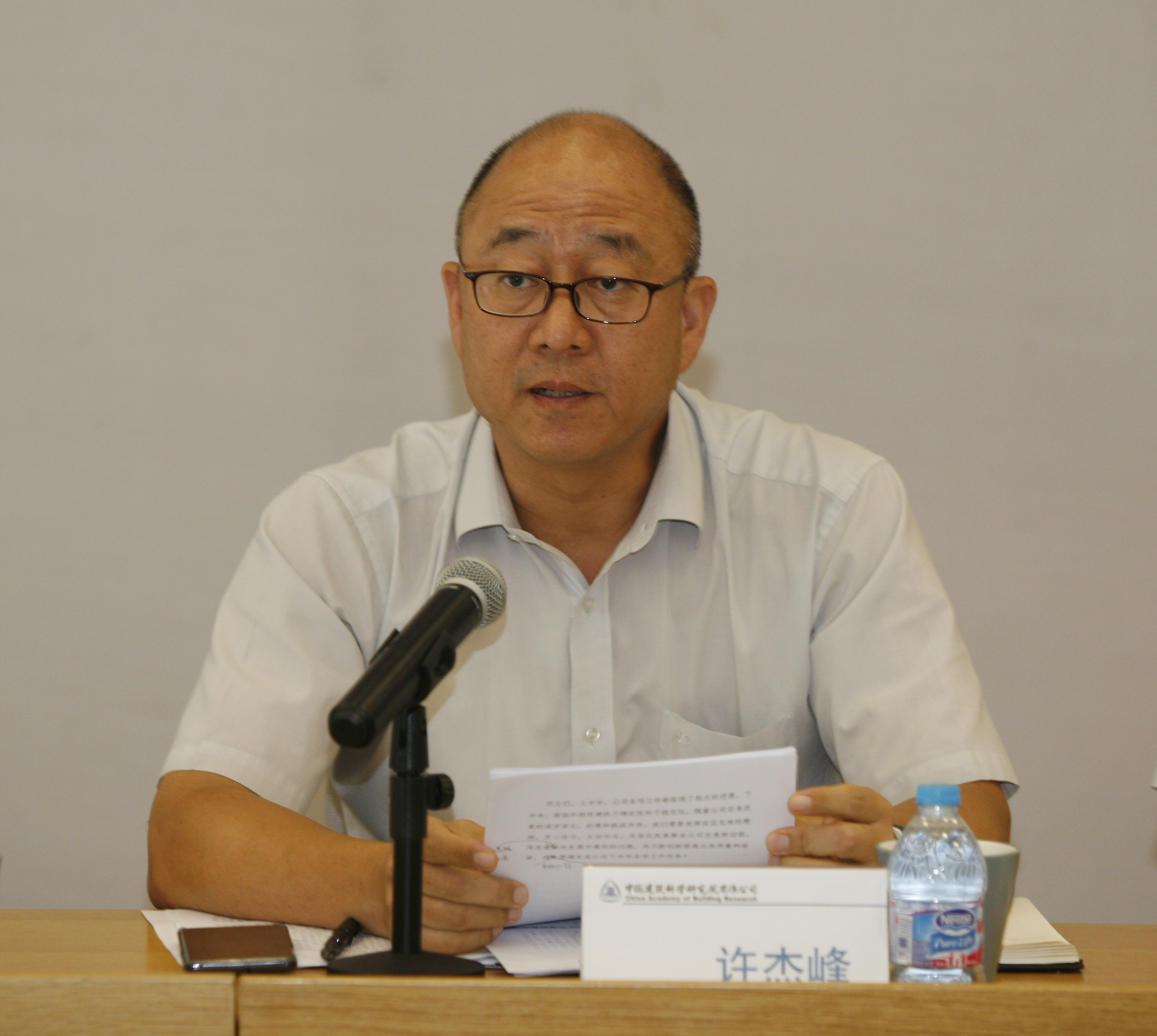 许杰峰作2018年上半年经营工作报告,总结上半年工作,分析经济指标及工作中的问题和不足,并从10个方面对下半年工作进行部署:强化责任落实,努力完成全年任务目标;落实国资委工作部署,推进公司深化改革;完成公司调研报告,为公司改革发展献计献策;推进战略合作,开展军民融合业务;加强科研标准工作,夯实行业引领作用;加强财务管控,切实做好降杠杆减负债工作;强化风险管控,为公司改革发展提供良好环境;完善工资总额管理,激发骨干人才积极性;践行社会责任,做好定点扶贫工作;举办中国建筑科学大会,提升公司品牌影响力。