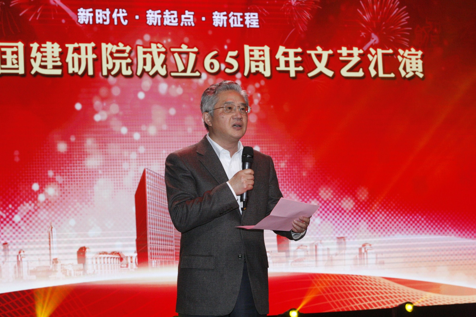 为庆祝中国建研院成立65周年,抒发公司干部职工爱国、爱党、爱院的真挚情感,充分展示团结向上的精神风貌,10月24日,公司举办了“庆祝中国建研院成立65周年文艺汇演”。公司领导王俊、李洪凤、许杰峰、王清勤、李军与员工一起观看了演出。