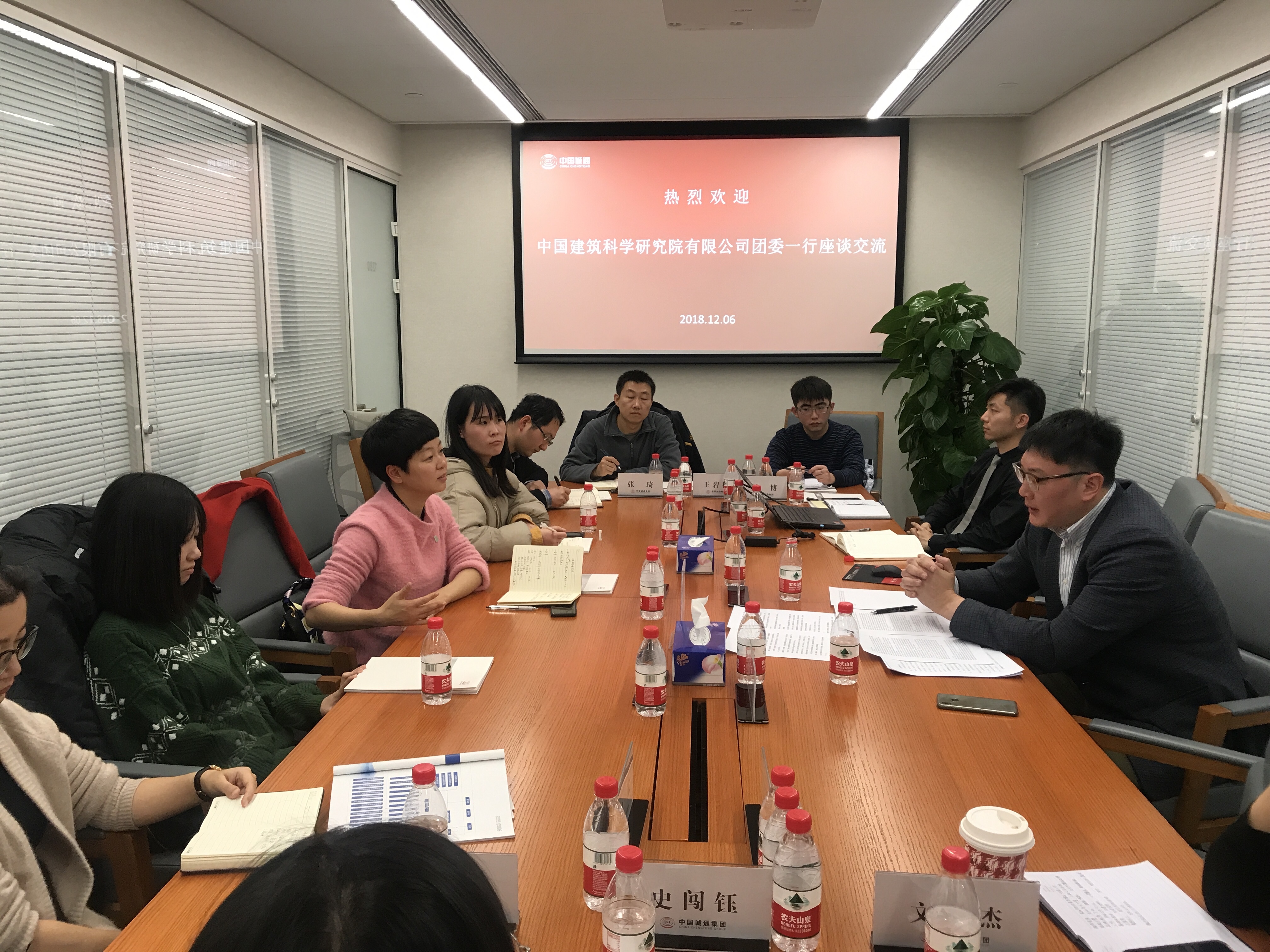 公司团委书记刘雅芹介绍了公司概况和共青团工作,对中国诚通集团团委的热情接待表示感谢,并希望加强相互沟通学习,建立友谊共同提高。与会人员就企业共青团工作热点、难点进行了深入交流,获益匪浅。