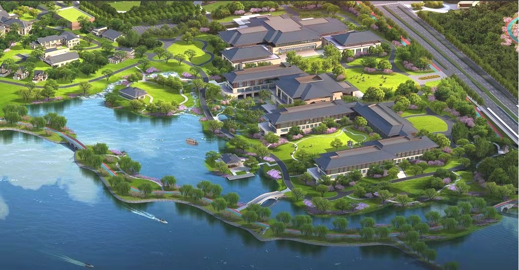 项目会议中心分为地下一层、地上两层,建筑面积约3.3万平方米,会议室21个,可容纳2500余人同时使用。项目客房中心分为地下一层,地上三层,局部两层,建筑面积约4.7万平方米,客房数量231间,可以满足330人入住。项目市政景观包括景观小品工程、园林绿化工程、桥梁工程、道路铺装工程、小市政及景观堤。