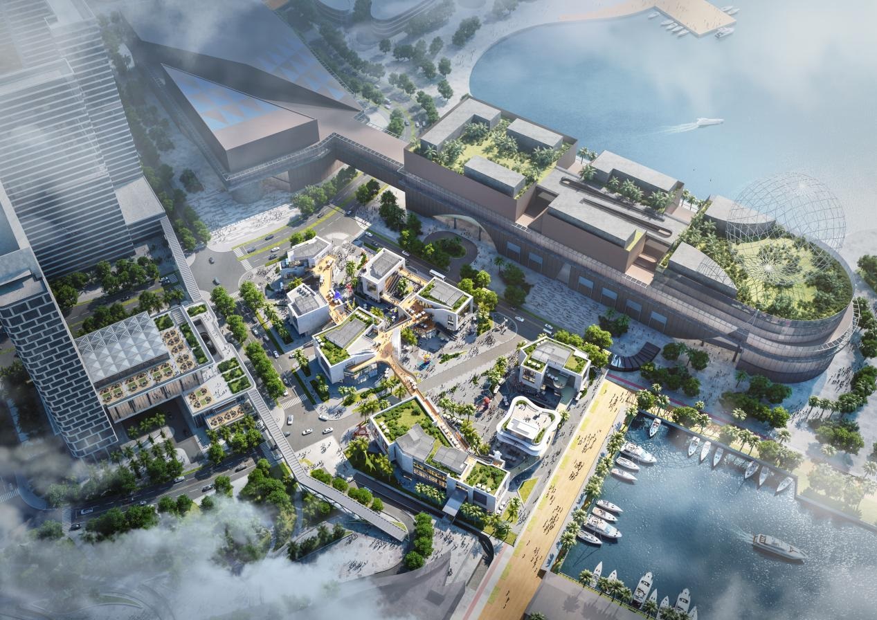 听风阅海园四单元项目位于深圳市南山区太子湾片区,项目以近零能耗建筑/碳中和建筑为设计目标,通过采用主动+被动式节能技术、可再生能源利用以及能耗与碳排放监控系统,实现节能降碳。项目在主动式节能技术方面,采用多联机+独立新风系统的空调设计,覆盖各商业区域,降低运行能耗,并采用能效等级1级的节能变压器,进一步节能减排;被动式节能技术方面,通过绿化屋顶、光伏组件与高大乔木的结合,以及商场连廊的遮阴设计,有效降低热岛效应,提升绿化至45%。此外,项目安装光伏组件为建筑提供清洁能源,余电并网,实现能源自给自足;采用监控系统,实时显示碳排放数据与低碳技术,宣传低碳节能理念,提升公共意识。