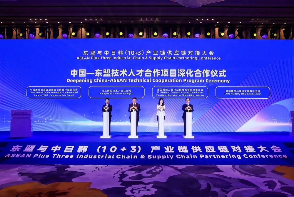 大会期间,举行了中国-东盟技术人才合作项目深化合作仪式。中国建研院认证中心副主任何更新作为项目合作伙伴单位代表,与项目发起单位中国贸促会商业行业委员会、马来西亚技术人员注册局(MBOT)、项目合作伙伴全国船舶工业行业教育教学指导委员会等单位的代表共同出席仪式活动。