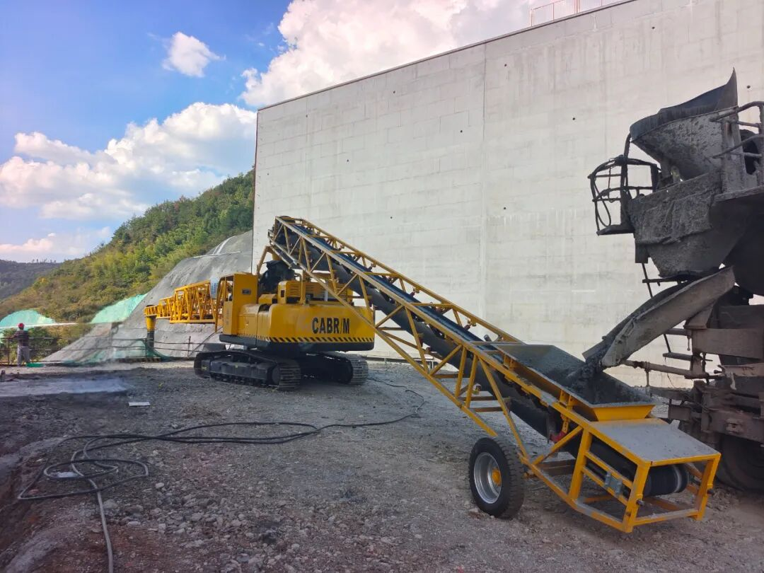 履带式皮带浇筑机应用于浙江缙云棠溪水库浇筑三级配混凝土