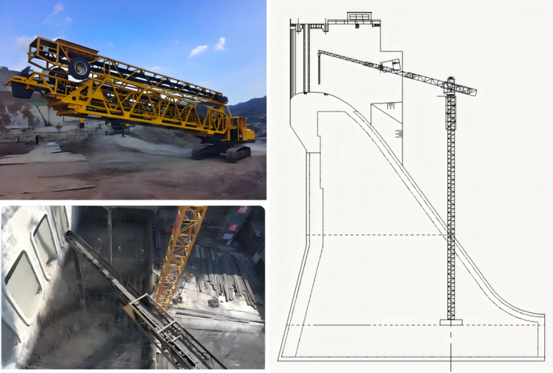 该设备通过超长皮带接力输送方式,将混凝土从搅拌站直接输送至工程浇筑点,为末端浇筑设备连续供应混凝土材料。