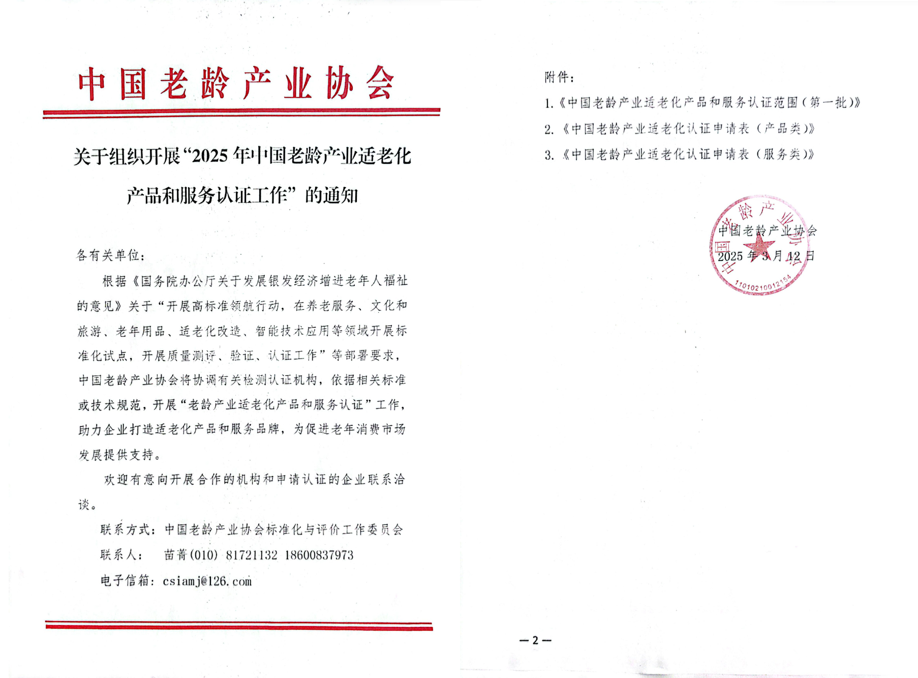 为助力发展银发经济、增进老年人福祉,中国建研院认证中心基于所参加的“十四五”国家重点研发计划课题“社区通用设施和服务适老化检测评价方法和认证规范研究”工作,作为技术支持单位之一,配合中国老龄产业协会落实《国务院办公厅关于发展银发经济增进老年人福祉的意见》部署要求,开展老龄产业适老化产品和服务认证工作。