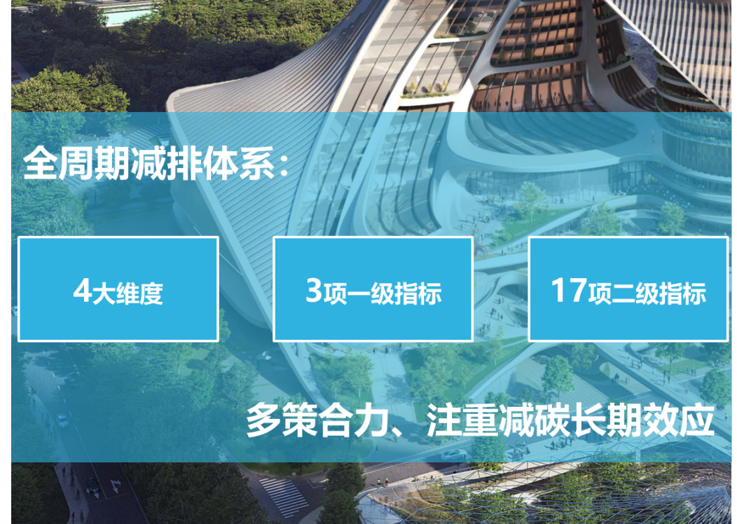 为实现真正的低碳目标,中国建研院深圳分公司帮助项目建设单位共同梳理主流标准体系和核心政策要求,围绕低碳管理、低碳建造、低碳运行、碳中和四大维度,精心打造了一套包含3项一级先进指标、17项二级先进指标的低碳减排指标体系。该体系覆盖超高层项目开发的全周期,从规划设计时的碳排放预评估,到施工建造过程中的低碳建材选用、建造碳排放监测,再到运营阶段的低碳运维建议,每一个环节都有明确的量化或定性要求。