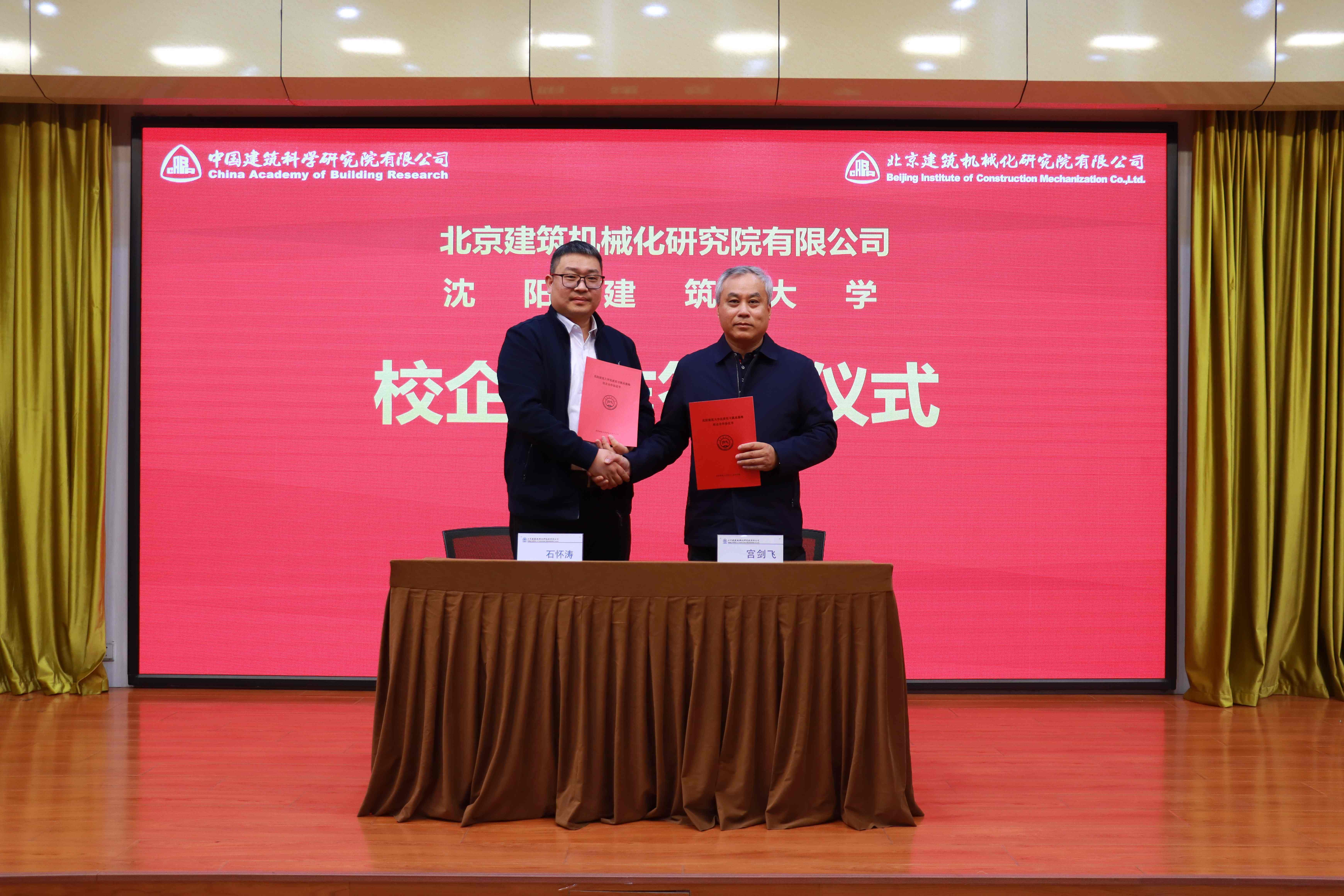 111日,沈阳建筑大学以下简称“沈建大”)机械工程学院院长石怀涛一行到北京建机院调研交流双方签署合作协议。北京建机院董事长宫剑飞,副总经理王东红,总工程师罗文龙参加座谈交流