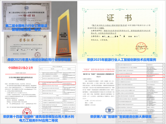 河北电厂项目已荣获2025年度第十四届"创新杯"建筑信息模型应用大赛水利电力工程类BIM应用二等奖、第六届"智建杯"智能建造创新大赛银奖、2025年度AI核能创新应用行业推荐场景、第二届全国电力行业工程建设管理创新成果一等奖、2025年能源行业人工智能创新技术应用案例等国内BIM奖项。