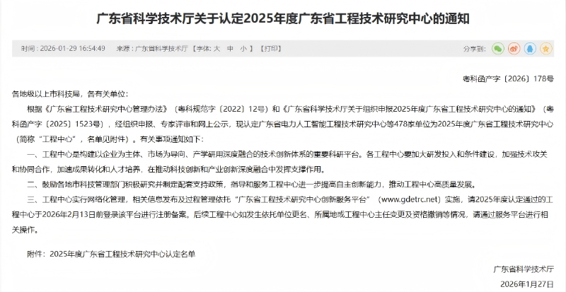 近日,广东省科学技术厅正式发布2025年度广东省工程技术研究中心认定名单,深圳分公司下属深圳中建院建筑科技有限公司(以下简称“深圳中建院”)牵头组建的广东省建筑工程质量数字化检测工程技术研究中心成功入选,标志着深圳中建院在建筑工程质量数字化检测领域的技术实力、创新能力与行业影响力获得省级权威认证,彰显出公司在赋能区域产业创新、推动建筑行业高质量发展中的责任与担当。