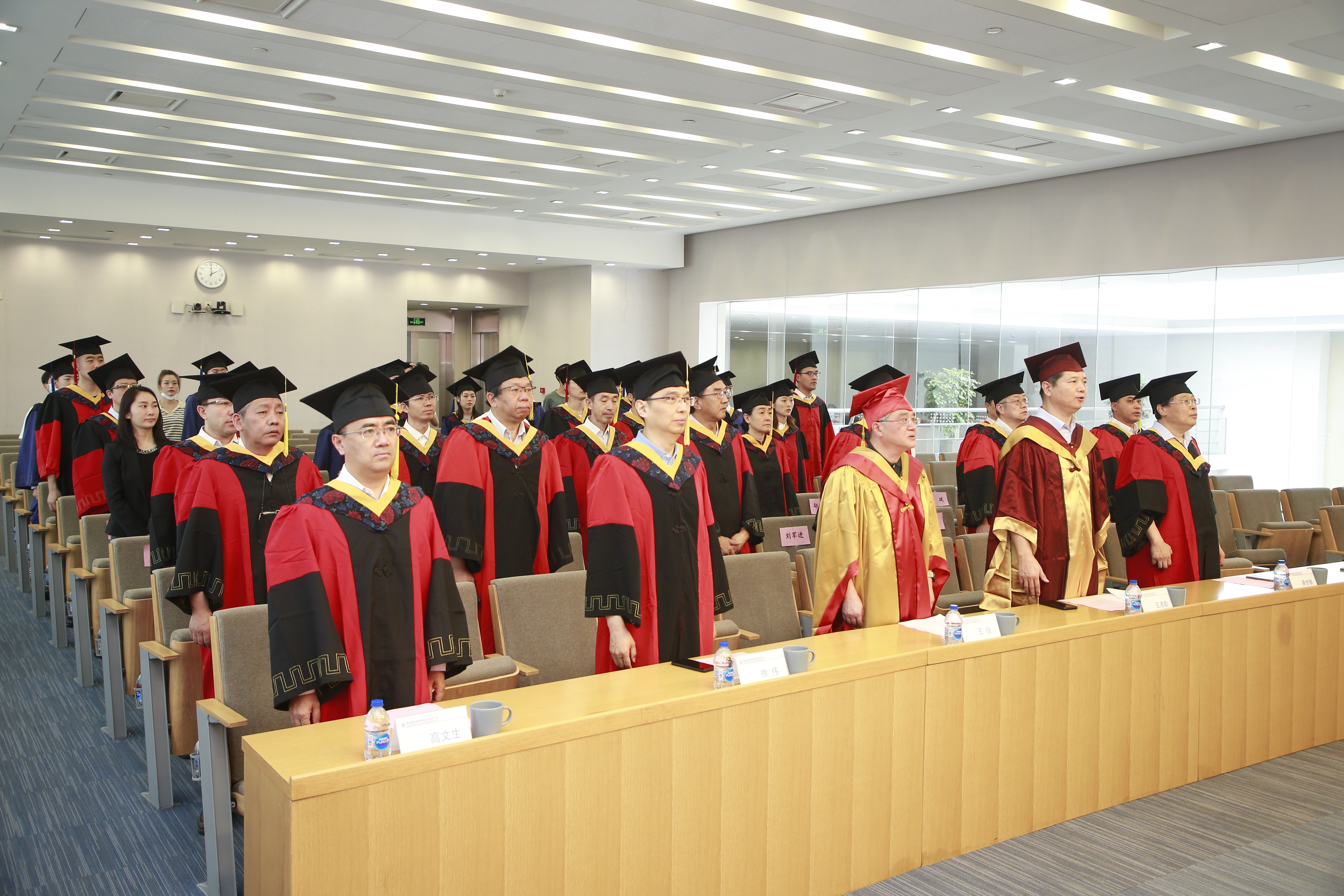 毕业典礼在雄壮的国歌声中拉开帷幕。