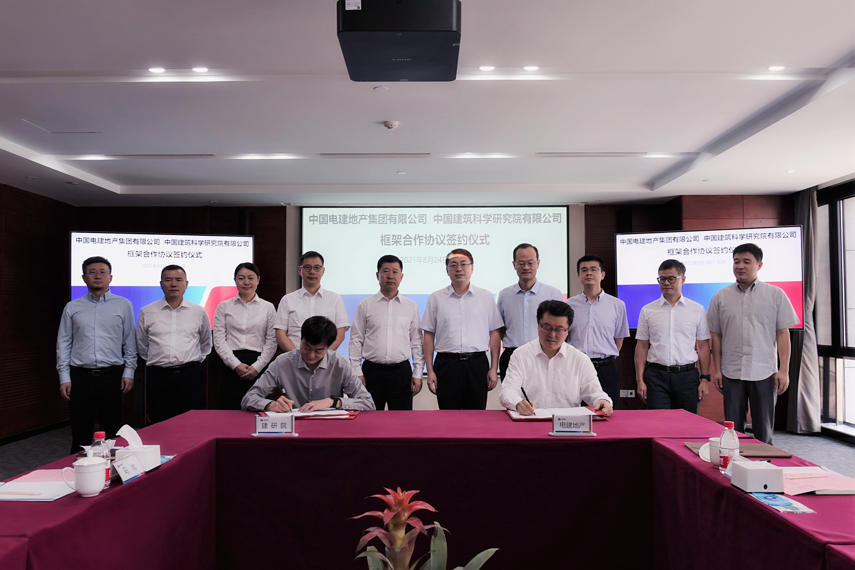 8月24日,公司与中国电建地产集团有限公司在京签署框架合作协议,双方将立足行业领先地位,充分发挥各自领域特长,以优势互补、互惠互利、合作共赢为原则,就项目规划、建筑设计、绿色建筑、专项咨询和工程总承包等建设工程全产业链进行合作。公司党委副书记王阳,中国电建地产集团党委书记、董事长夏进出席签约仪式。公司党委委员、副总经理李军与中国电建地产集团党委副书记、总经理薛志勇签署合作协议。
