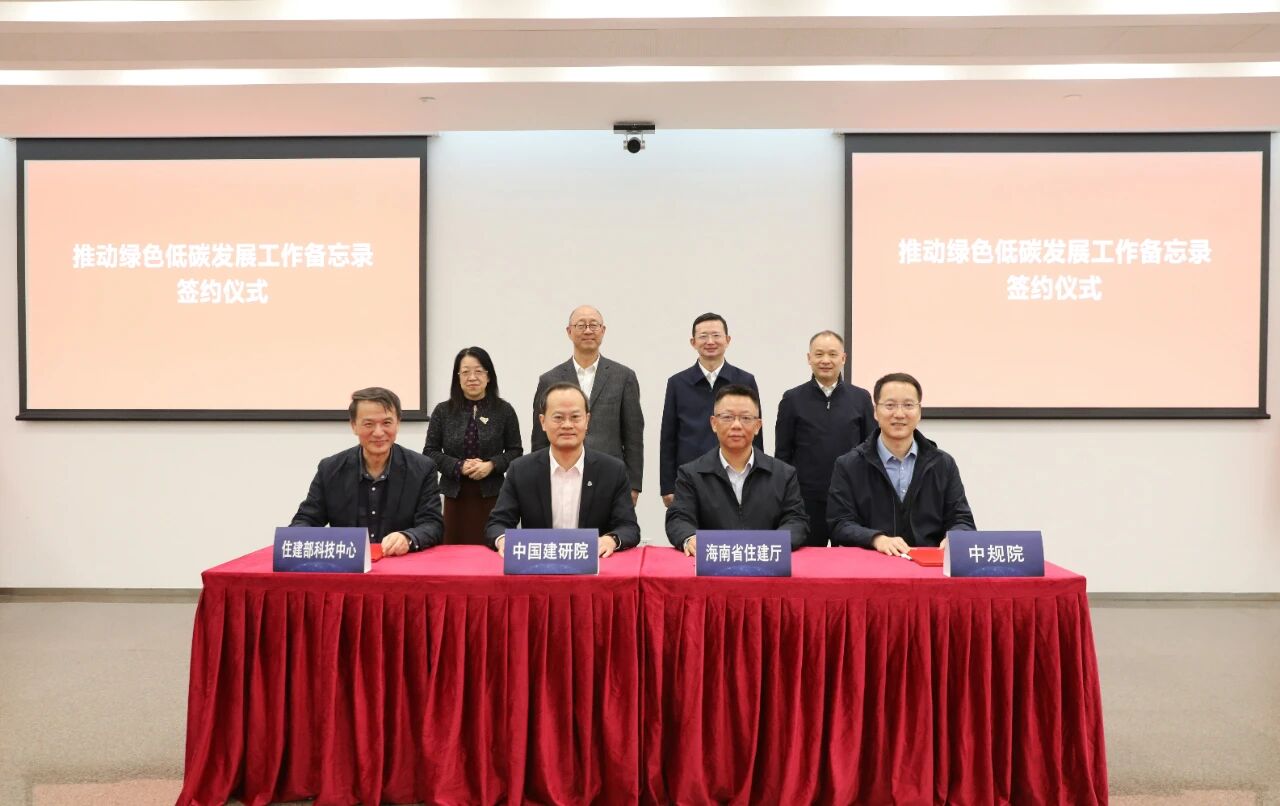 11月13日至14日,海南省住建厅党组书记周军平,党组成员、副厅长刘联伟、汪科一行到访中国建研院,与中国建研院、中规院、住建部科技中心签署《推动绿色低碳发展工作备忘录》。海南省住建厅党组书记周军平,党组成员、副厅长刘联伟、汪科;中国建研院党委书记、董事长许杰峰,副总经理孙建超,标准大师王清勤;中规院党委委员、副院长张圣海,副总规划师刘继华;住建部科技中心党委书记文林峰,党委委员、副主任武振出席签约。