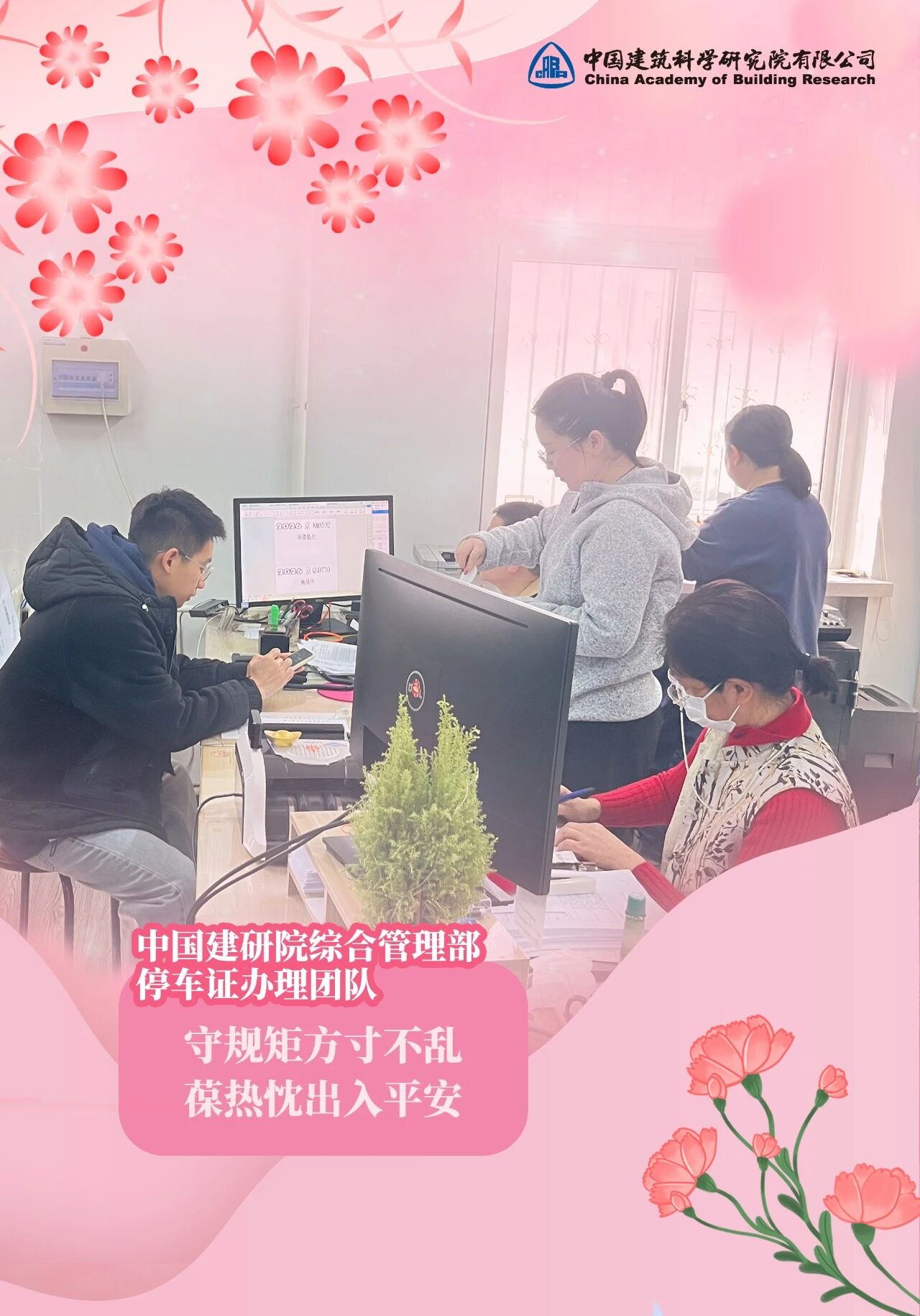 中国建研院综合管理部停车证办理团队,承担着单位职工、家属院住户及日常访客的车辆通行管理任务。作为维系办公区与生活区双重秩序的连接点,团队秉持严谨细致的工作作风,每年处理大量申请材料,逐一核对房产信息、职工身份及车辆档案,确保审核零疏漏。面对多类型车辆、全天候时段的复杂管理需求,团队持续优化“线上初审+线下核验”流程,将办证周期大幅缩短,为公司高效有序运转筑牢坚实后勤防线。