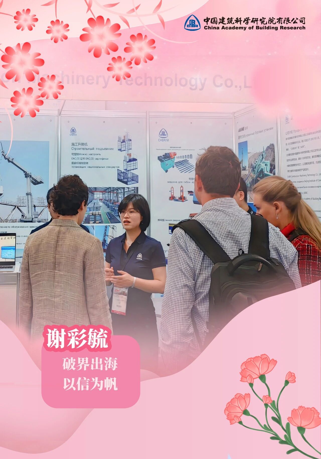 谢彩毓,北京建机院北京凯博擦窗机械科技有限公司市场营销部外贸经理。她深耕国际贸易多年,将擦窗机等产品成功出口到东南亚、非洲、中东等国家和地区。积极搭建海外市场脉络,并深入“一带一路”项目,成功落地埃及CBD、俄罗斯航天中心、阿拉曼新城、新加坡KEPPLE Tower、菲律宾SM Ecom等海外标志性项目,推动业务模式向“集成式供应+工程服务”升级,为凯博品牌国际化作出突出贡献。