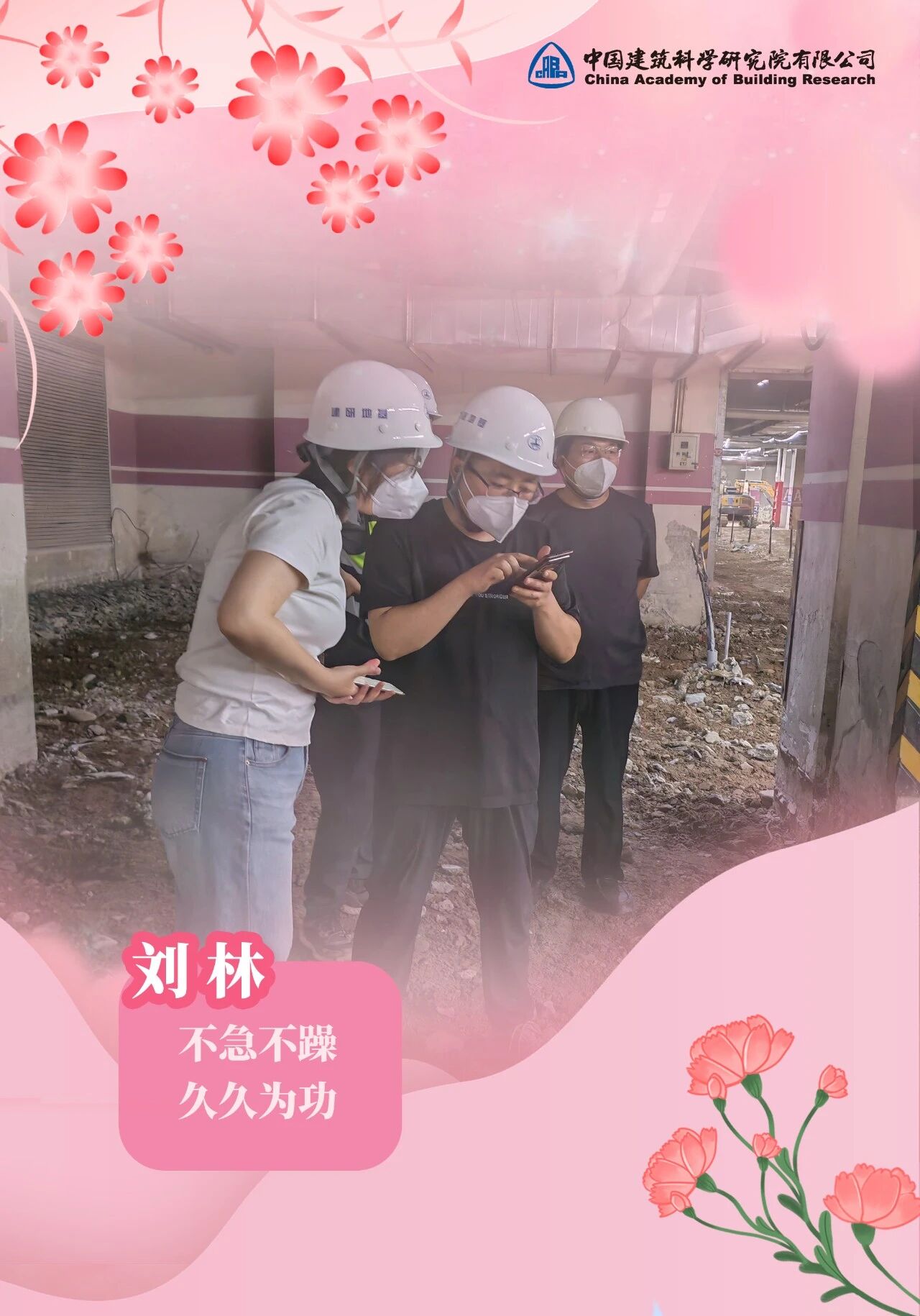 刘林,建研地基地基基础事业部高级工程师,国家注册土木工程师(岩土),主要从事既有建筑地基基础加固改造、地下结构抗浮加固及应急处理。她认为:如果把城市建筑比作生命体,我们就是随叫随到的“工程医生”。地基基础加固是为老楼“强筋健骨”,地下结构抗浮是防止建筑“漂浮移位”,应急处理则是在关键时刻“急救止血”。我们守护的不仅是建筑,更是建筑里的万家灯火。